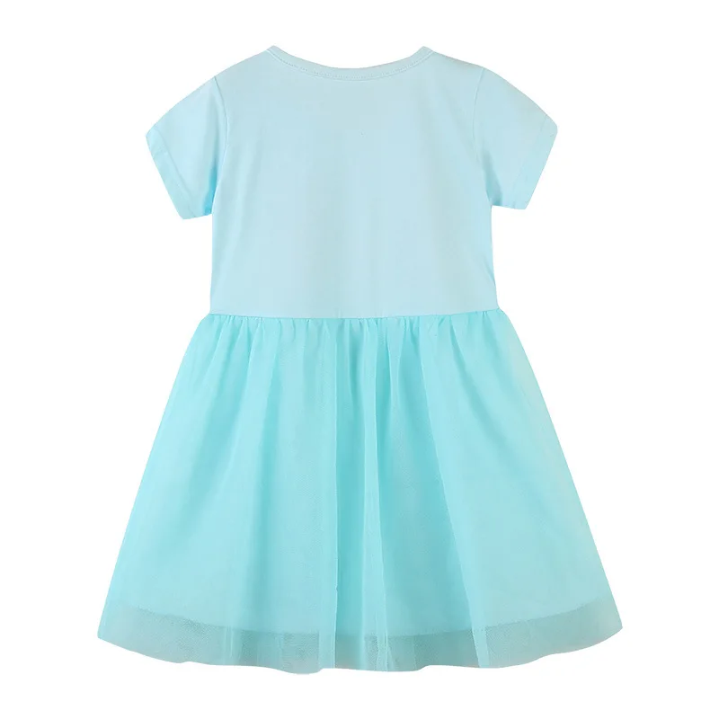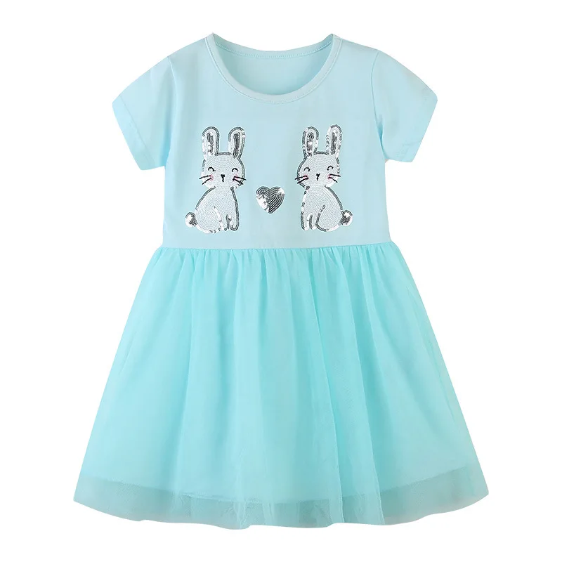 Little Maven2021 летнее платье для маленьких девочек красивое Сетчатое украшение голубого цвета с короткими рукавами для девочек, платье принцессы с блестками кролик для детей