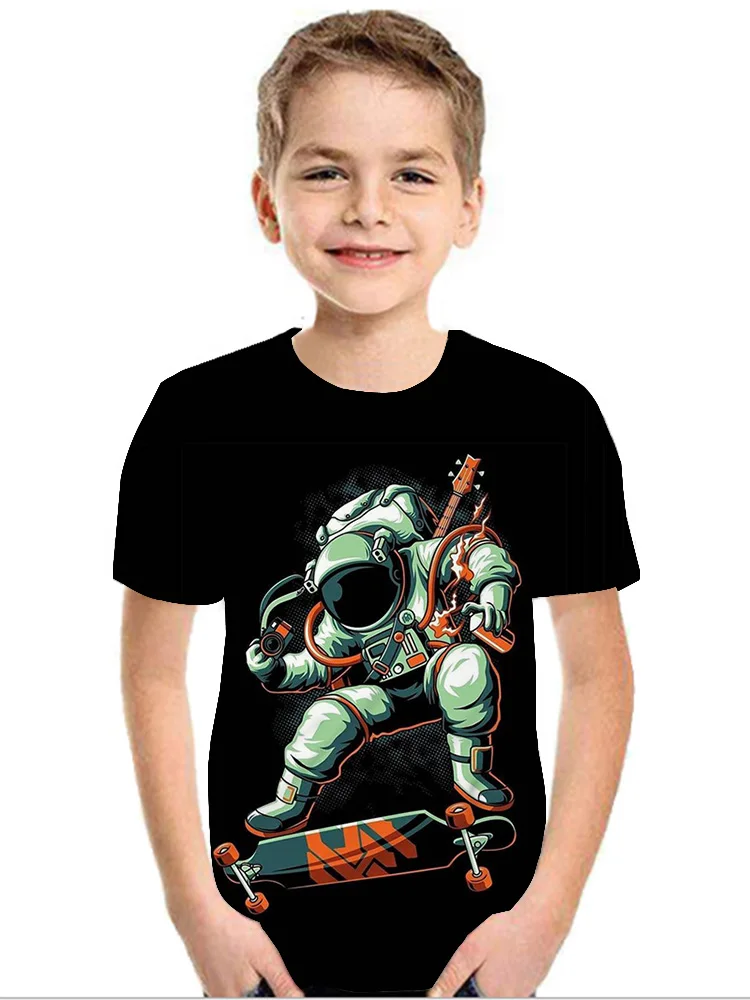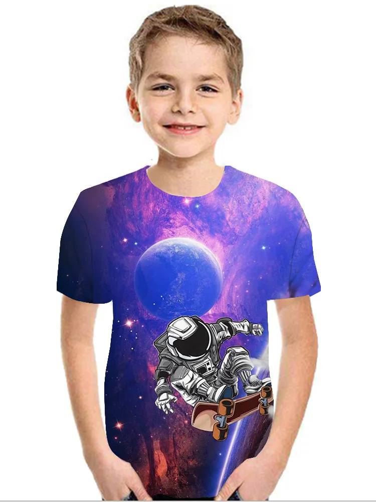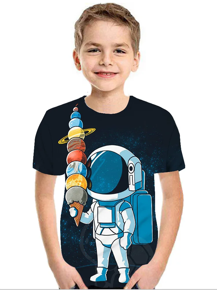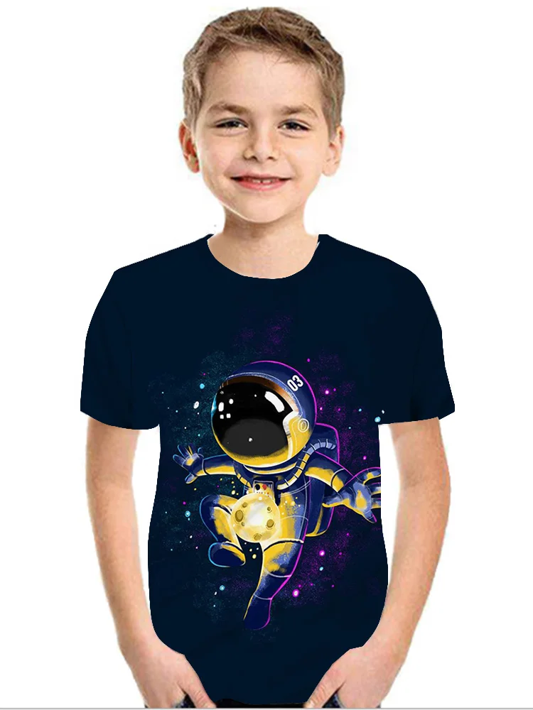 2021 Детская футболка с 3D рисунком астронавта, топы, летняя футбол...