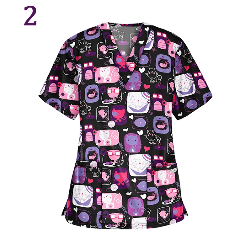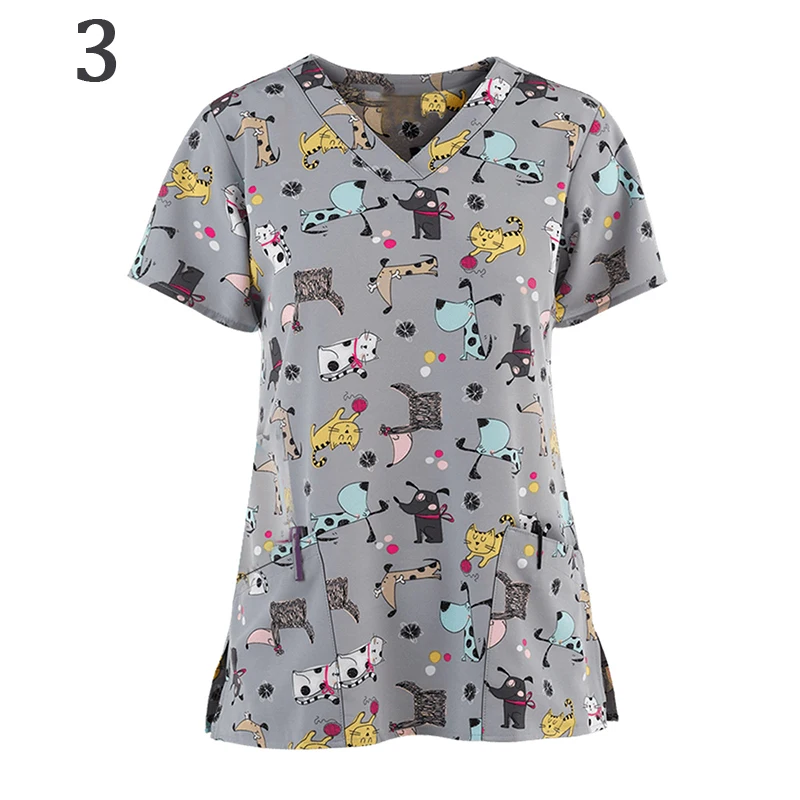 Униформа медсестры женская с принтом животных, повседневный топ с к...