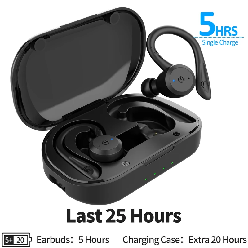 TWS-наушники Bluetooth с защитой класса IPX7 и микрофоном, 25 часов работы