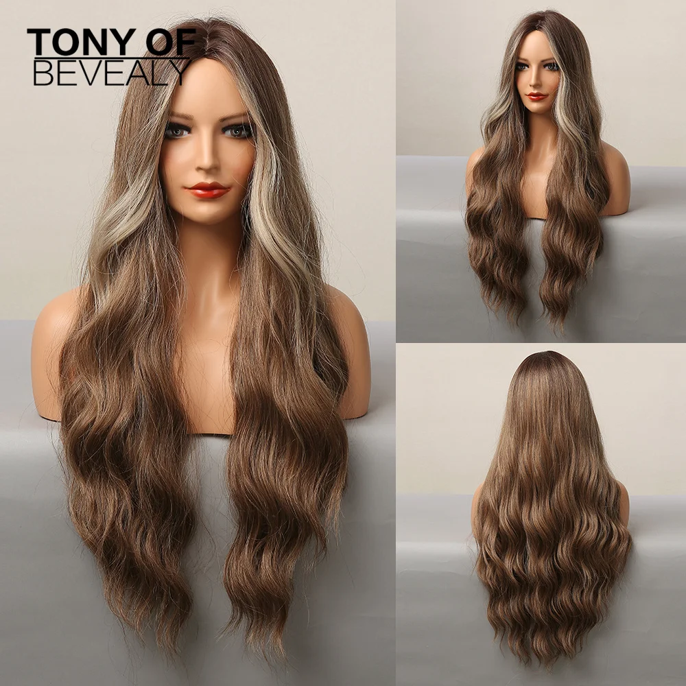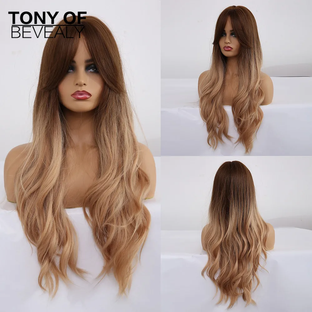 Длинные волнистые волосы Омбре красные коричневые синтетические парики с челкой для женщин афро повседневные Косплей натуральные волосы парики Термостойкое волокно