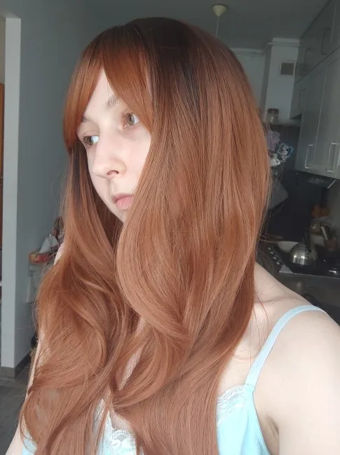 О, мой Бог! Мне очень нравится этот парик. Цвет такой красивый, и я получил так много комплиментов! Я занимаюсь театром и у меня есть прослушивание, так что я не могу сделать ничего сумасшедшего с волосами. Поэтому я заказал парик. Я был немного скептически из-за того, насколько дешево это было, но я очень доволен!