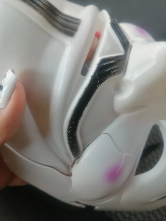 Маска с браком. Повреждена форма, несоответствие заявленной форме.
