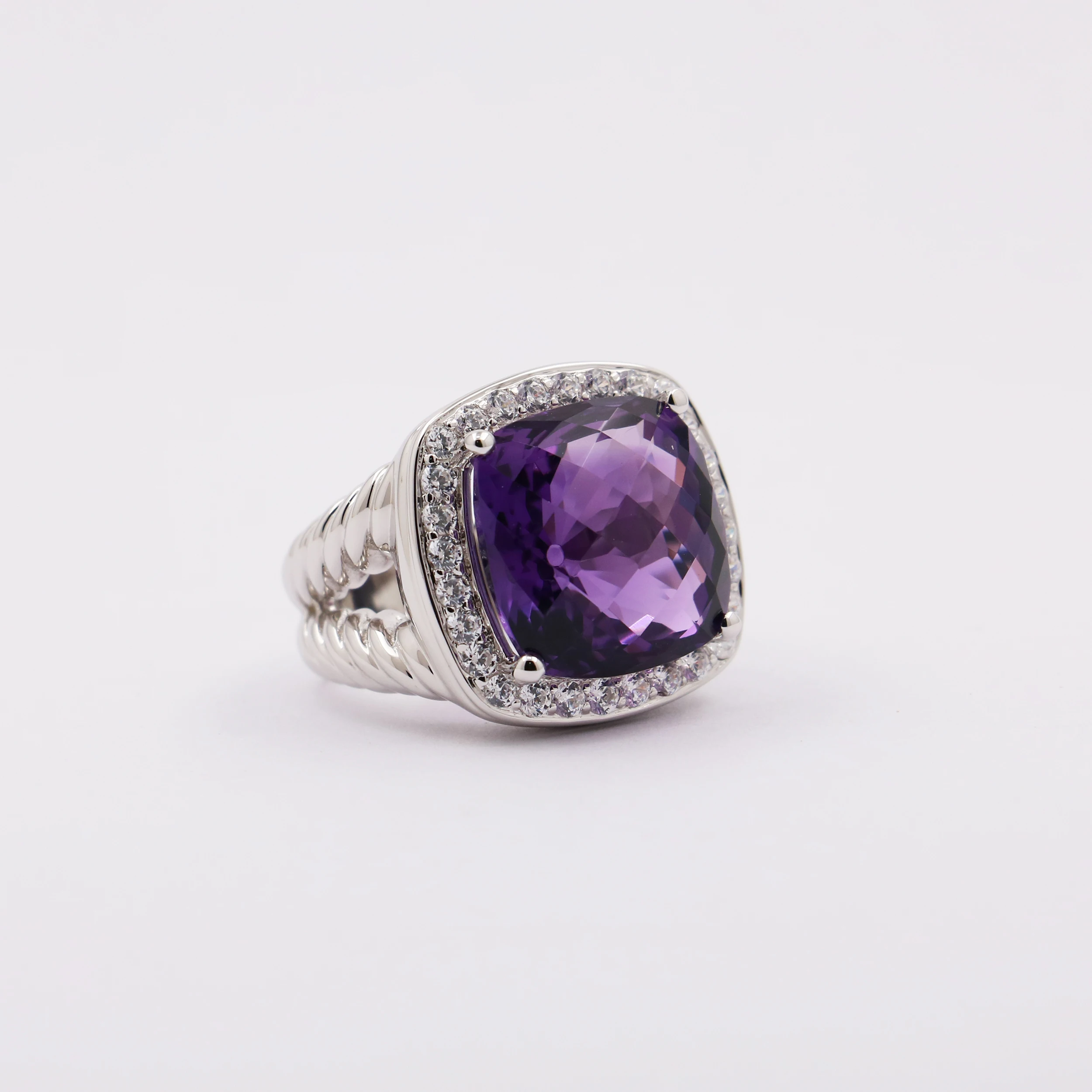 Изделие изготовлено из настоящего 925 пробы серебра и имеет 15 мм (прибл. 15,2 карат) Настоящий натуральный аметист. Ширина верхней части кольца составляет около 21 мм, а толщина нижней кольцевой ленты-около 7 мм.PS: может быть выгравирован ваш бренд или логотип на внутренней или внешней стороне кольца.