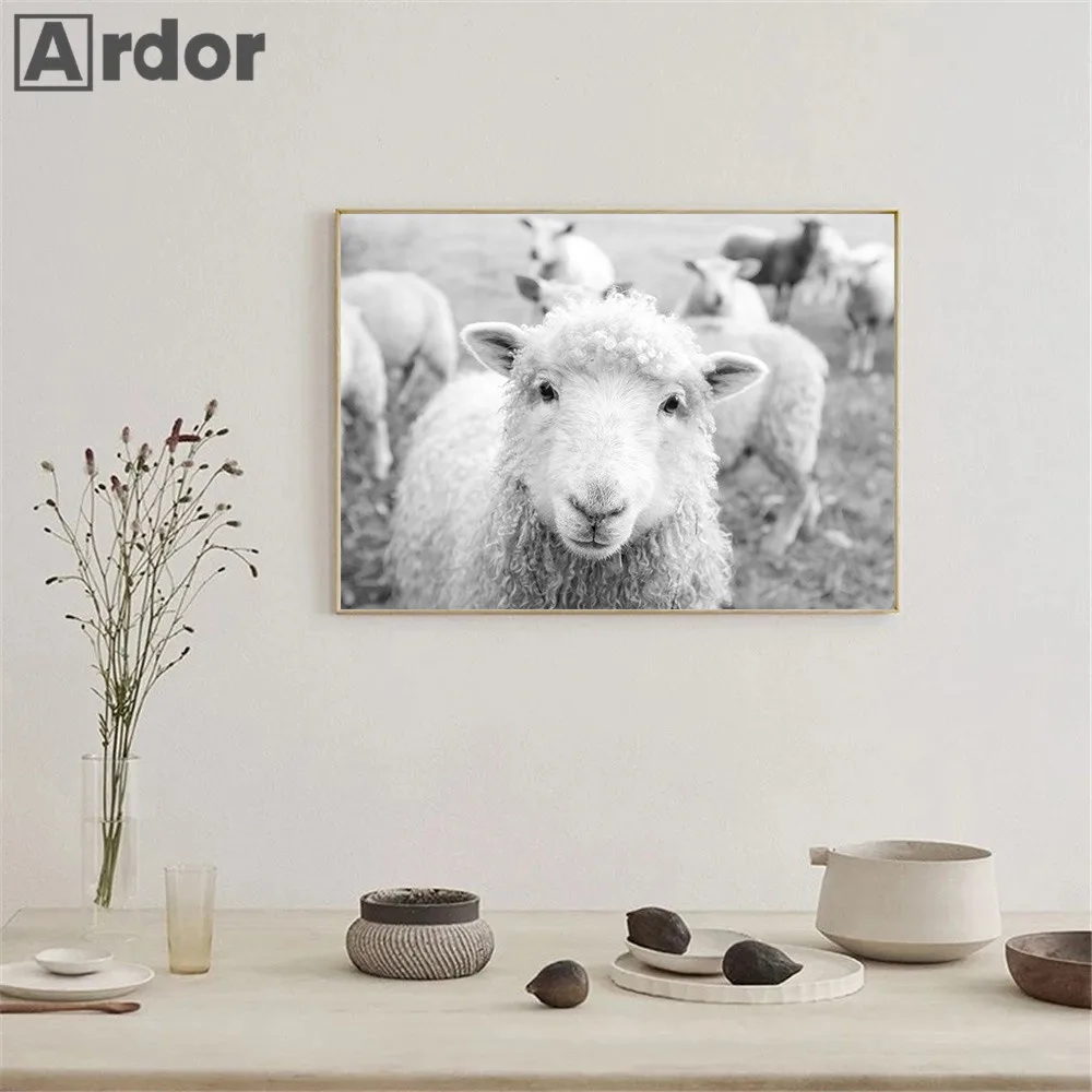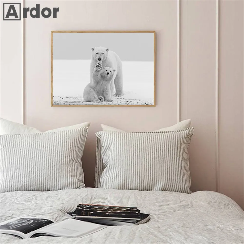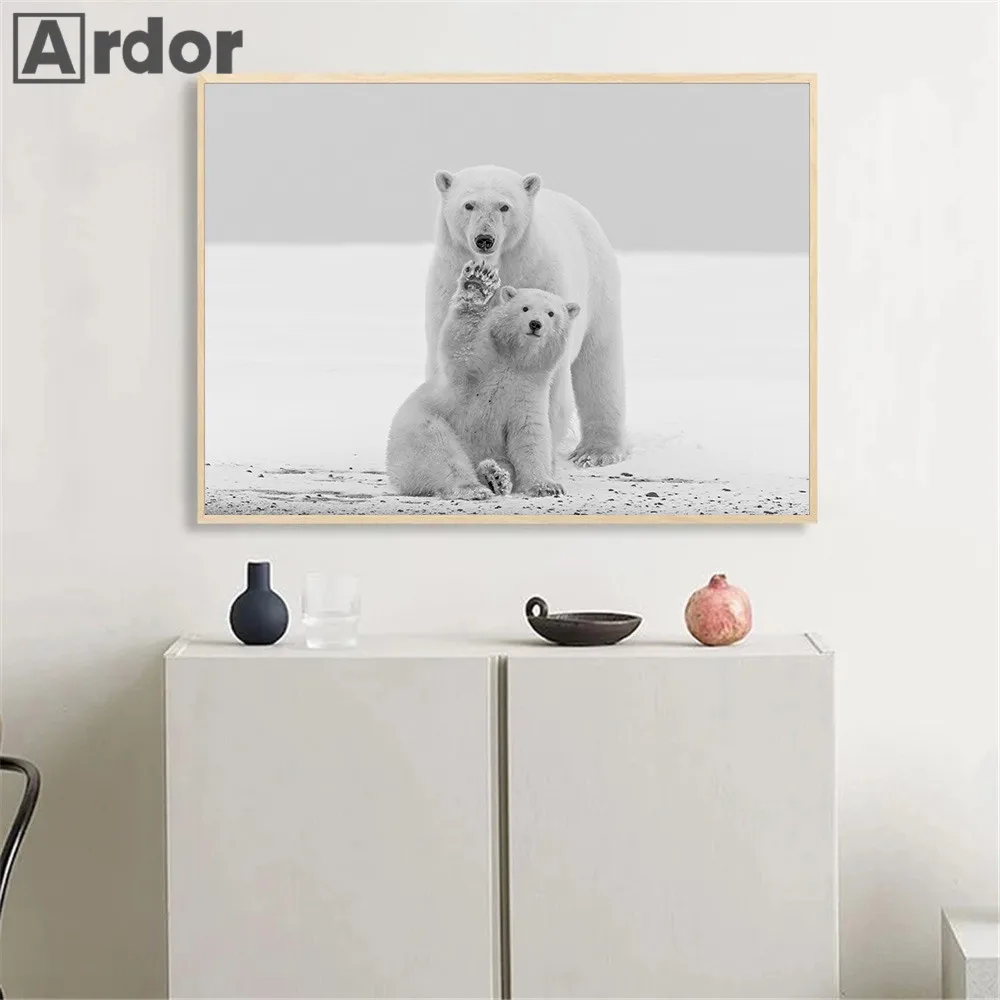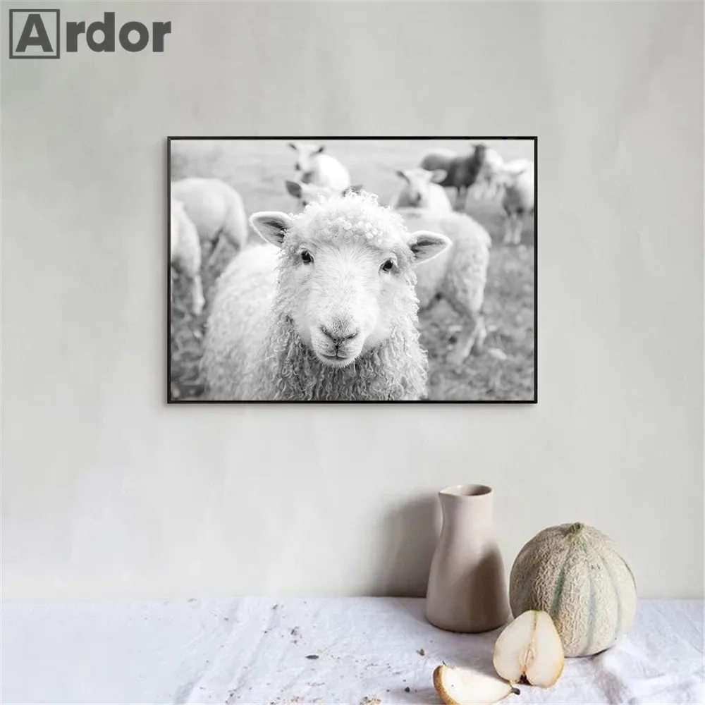 Современная живопись с изображением белого и черного животного, постер на холсте с изображением полярного медведя, овцы, настенные картины в скандинавском стиле, декор для гостиной