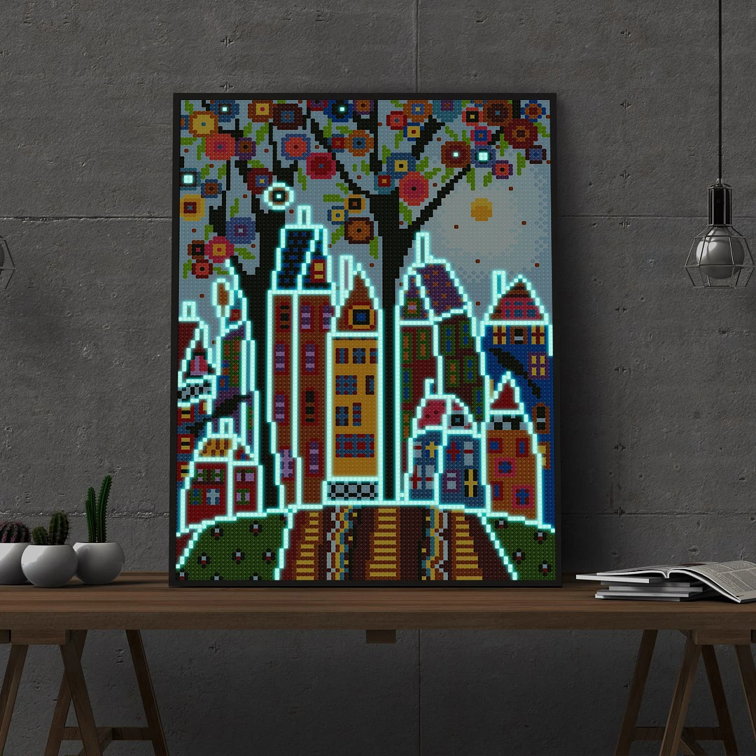 Это Алмазная картина DIY. Он не закончен. Вам нужно сделать это самостоятельно.
