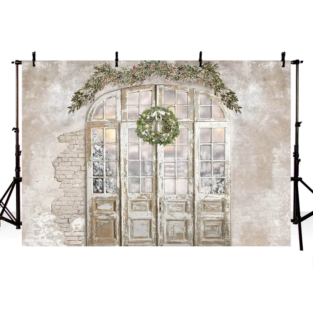 Рождественский фон для фотосъемки украшение старая цементная кирпичная стена деревянная дверь венок детский фон для фотостудии фотозона