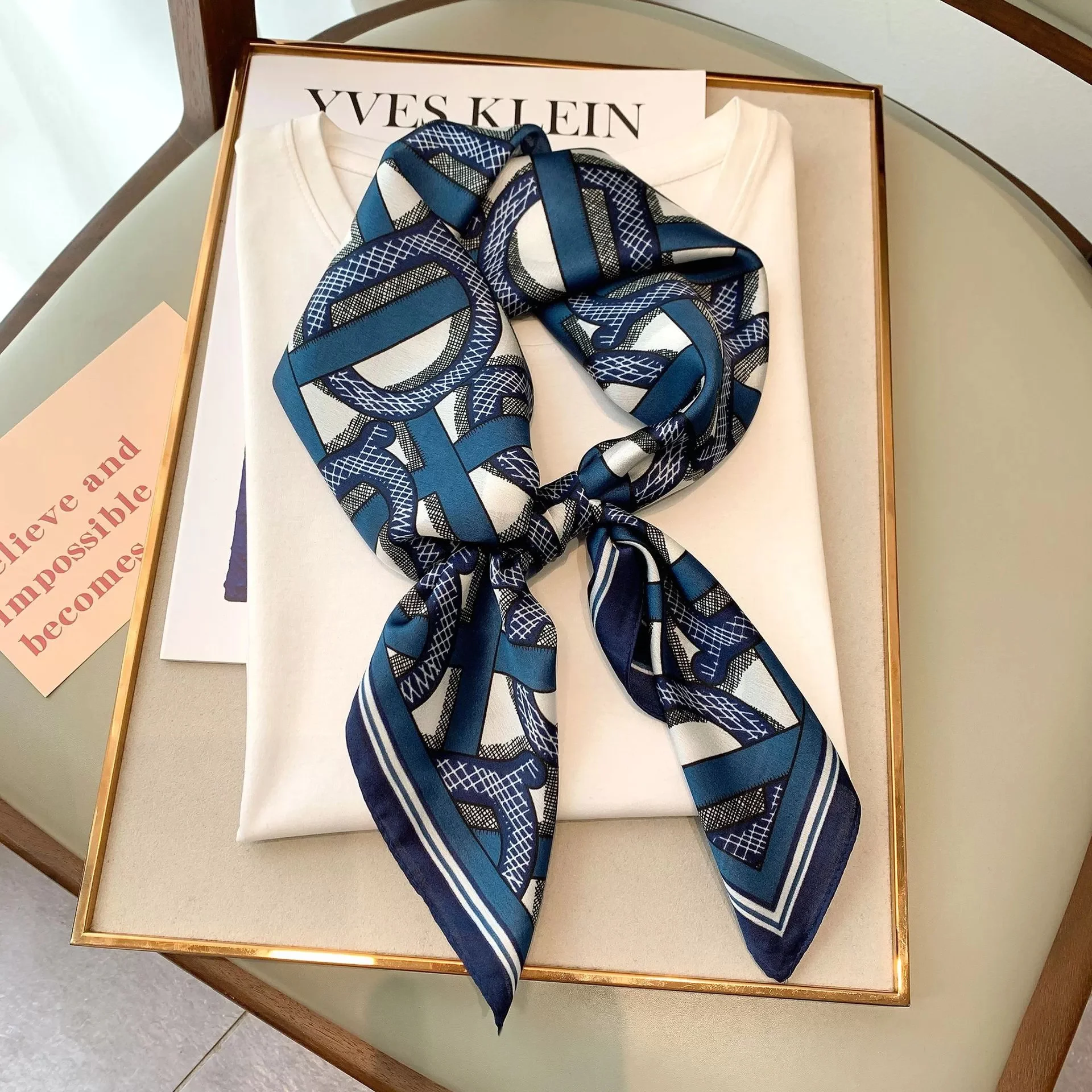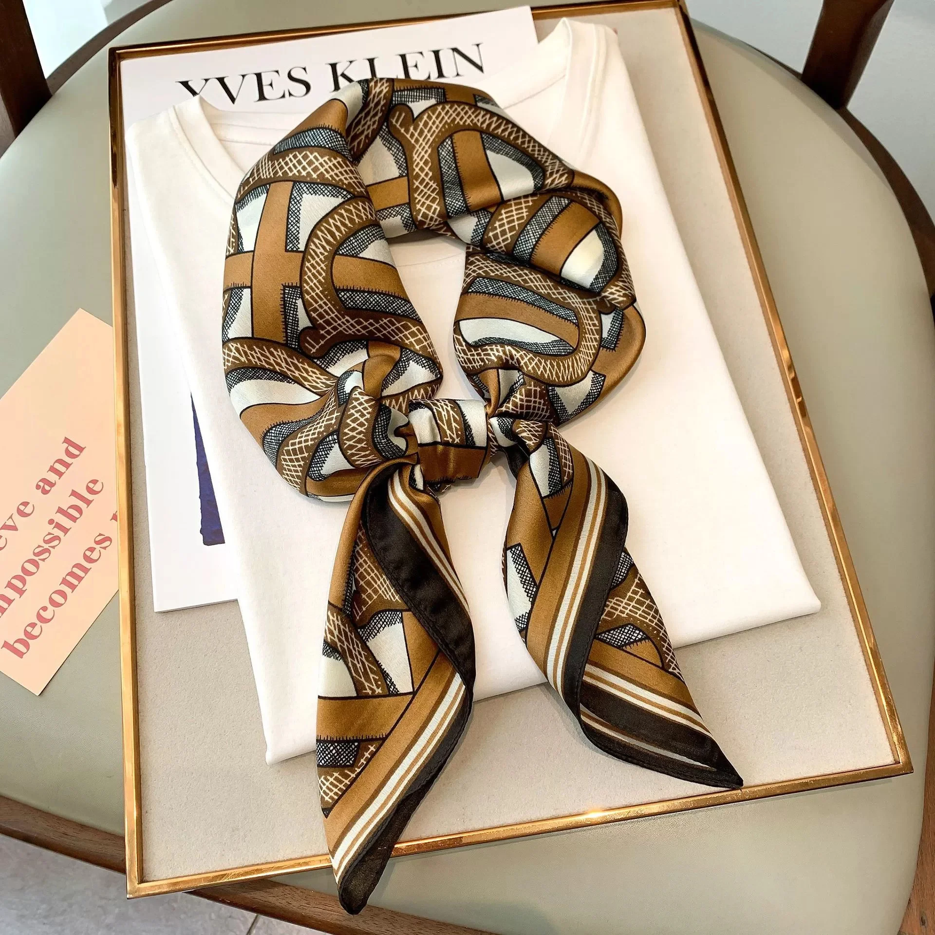 Платок женский атласный с принтом, Модный Шелковый шейный платок, Маленькая шаль, квадратный платок, бандана, для девушек, 70*70 см