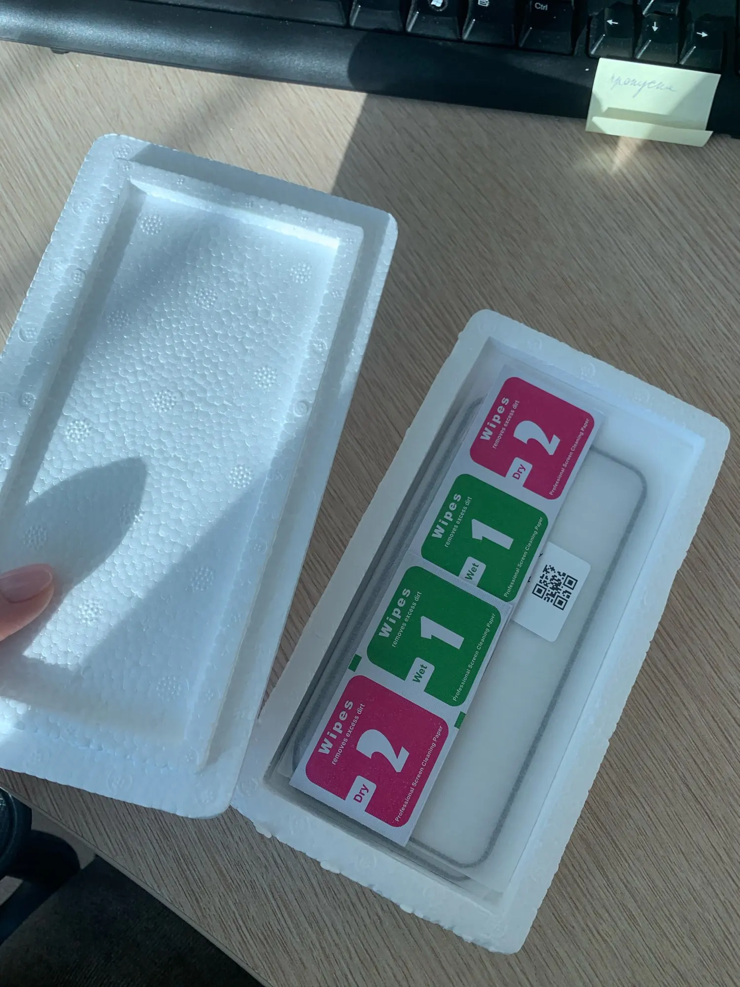 отличное стекло, очень довольна покупкой. наклеить очень легко. в комплекте обезжиривающие салфетки, пришло в пенопластовом футляре, что гарантирует целостность товара.