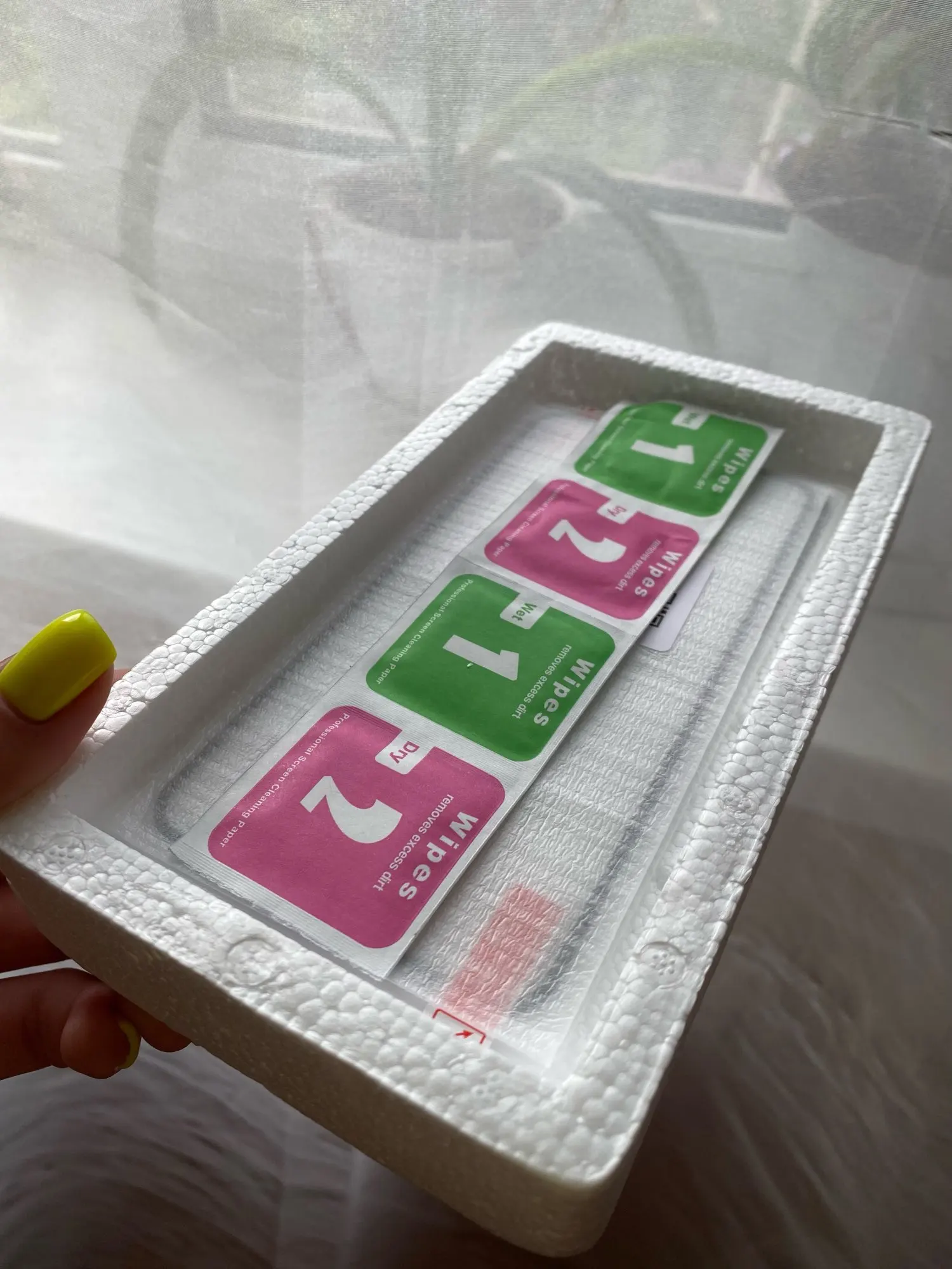Заказ до Москвы около 20 дней. Стекло хорошо упаковано. В комплект входят салфетки для очистки экрана перед установкой стекла.