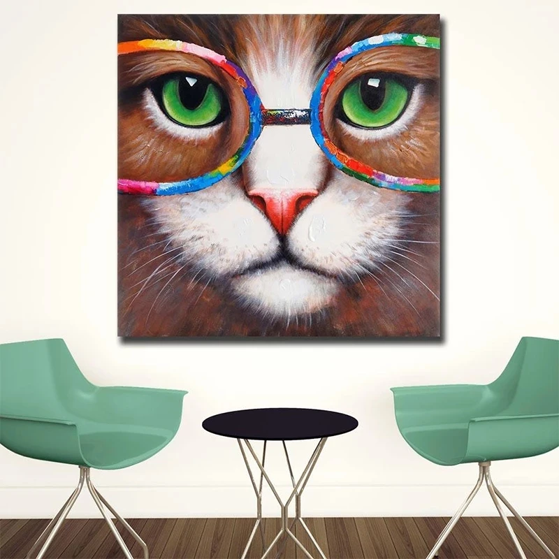 Красочный живопись маслом Кот холст абстрактная живопись Настенная ...