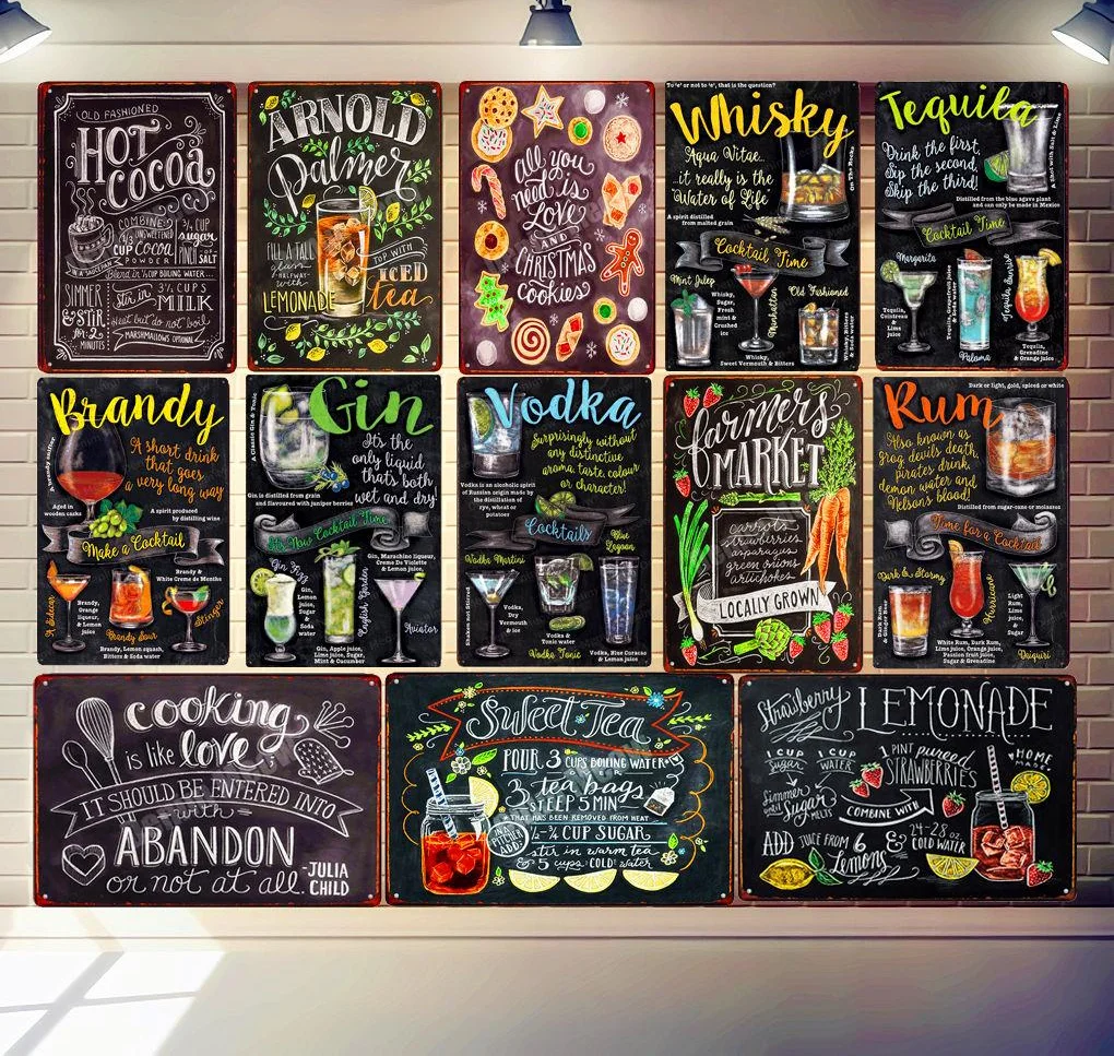 Горячее предложение сладкий чай какао винтажные металлические жестяные знаки для приготовления пищи настенная живопись бар паб кафе Кухня Декор коктейль Ретро налет