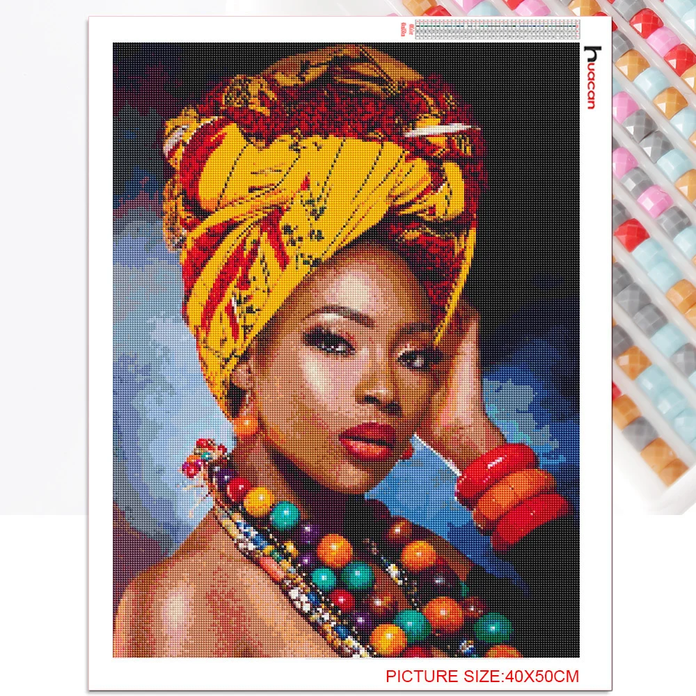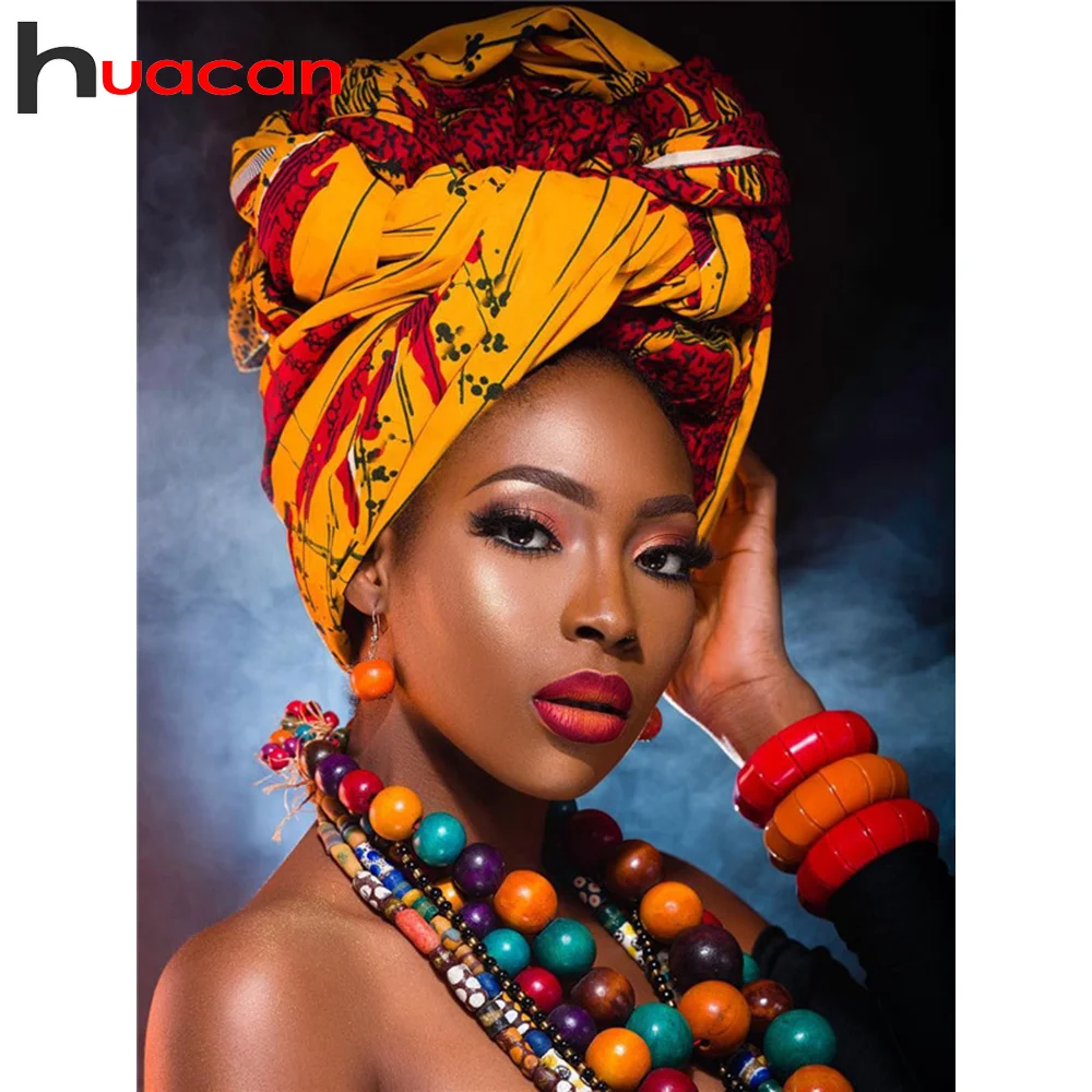 Алмазная 5d Вышивка Huacan для творчества, вышивка крестиком, мозаика для африканских женщин, полноразмерная картина из квадратных страз, портретная Модульная картина