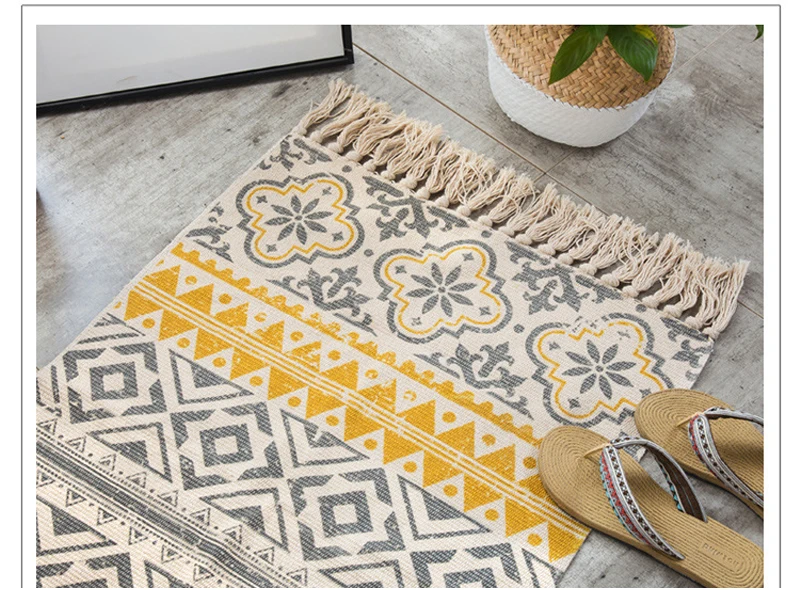 Вязаный небольшой ковер из хлопка и льна, ковер в этническом стиле с кисточками, небольшие коврики для спальни и кухни, ковер в стиле бохо, моющийся, домашнее украшение