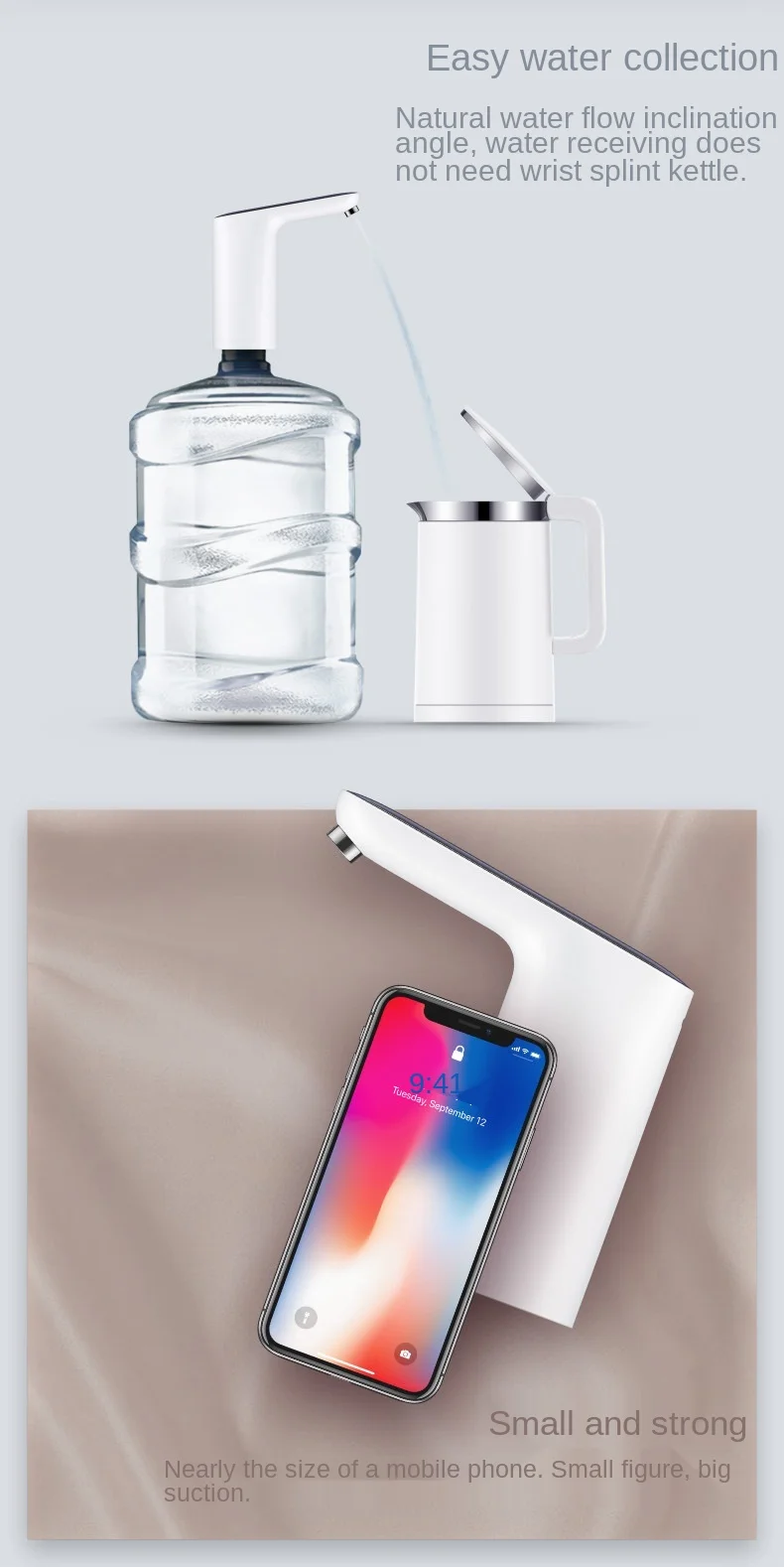 Пункт продажи: подходит для большинства бутилированной воды и минеральной воды на рынке, прост в эксплуатации и прост в использовании, высокая практичность! USB зарядка