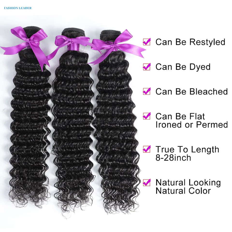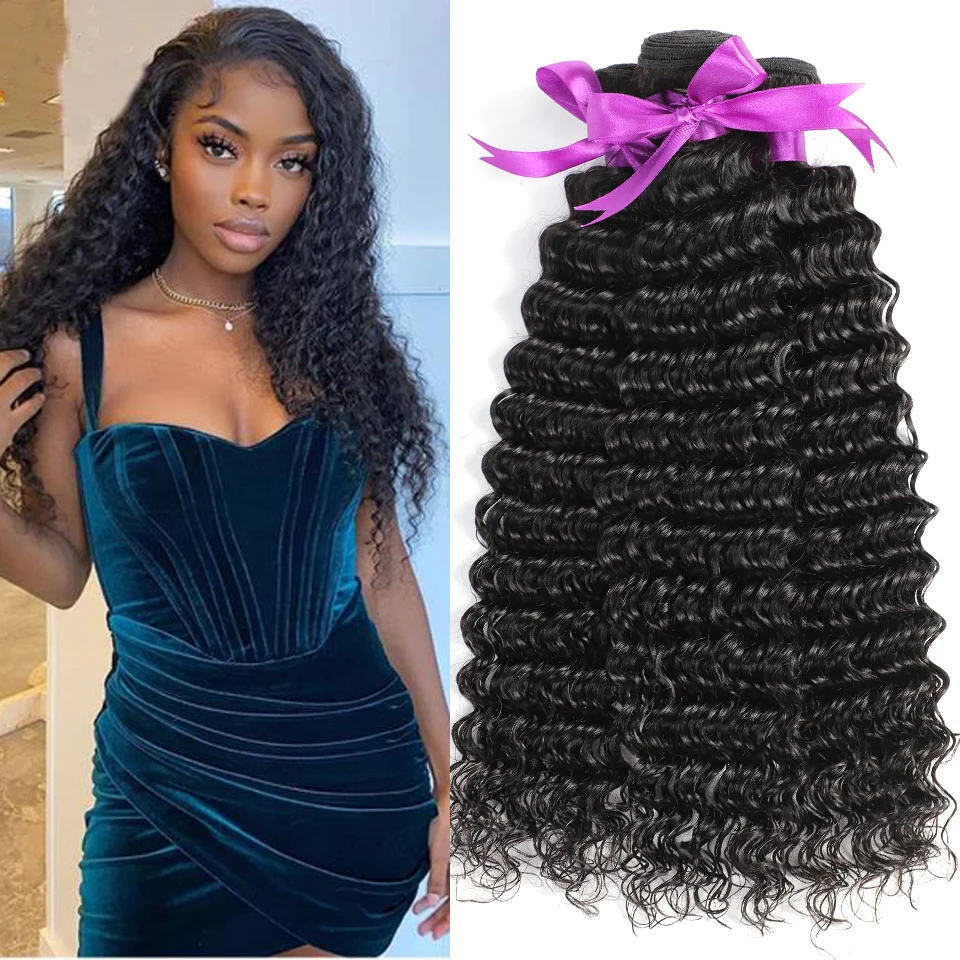 Модные пучки волос с глубокой волной, вьющиеся пучки волос 8-30 дюй...