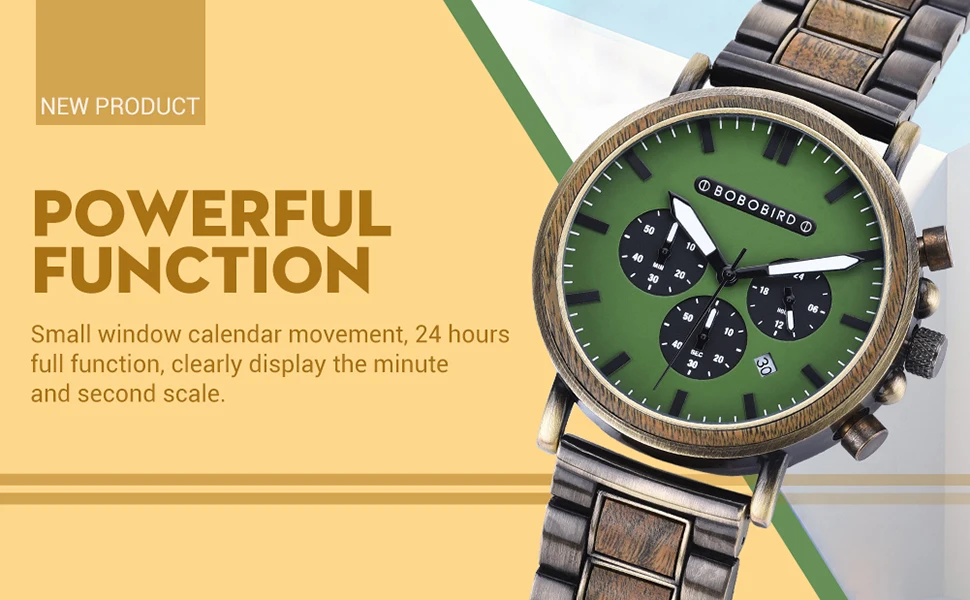 BOBOBIRD Роскошные деловые мужские часы с деревянным секундомером и...