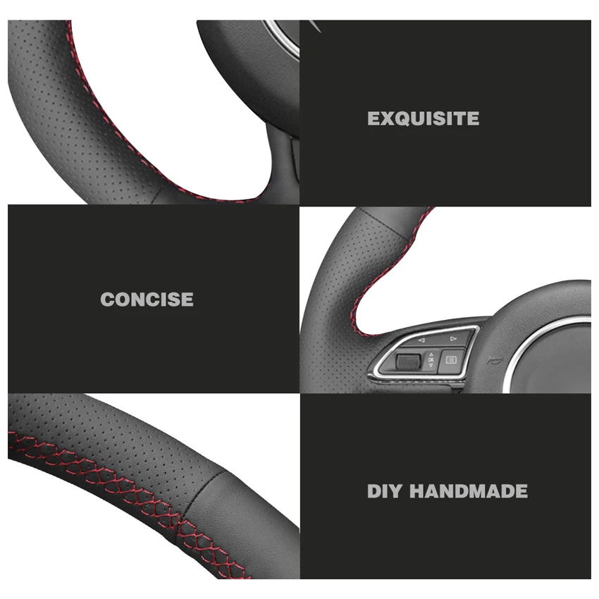 Черная замша красный маркер чехол рулевого колеса автомобиля для Au...