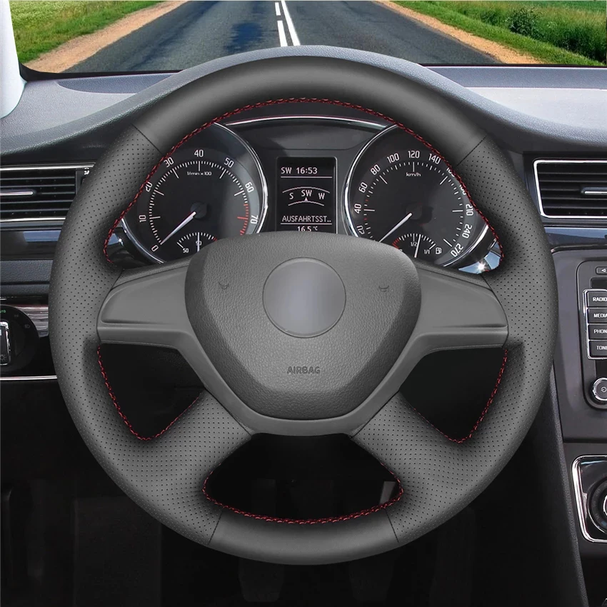 Черная искусственная кожа Чехол рулевого колеса автомобиля для Skoda Superb Octavia Roomster 2013 2014 2015 Citigo Fabia Rapid 2012-2013