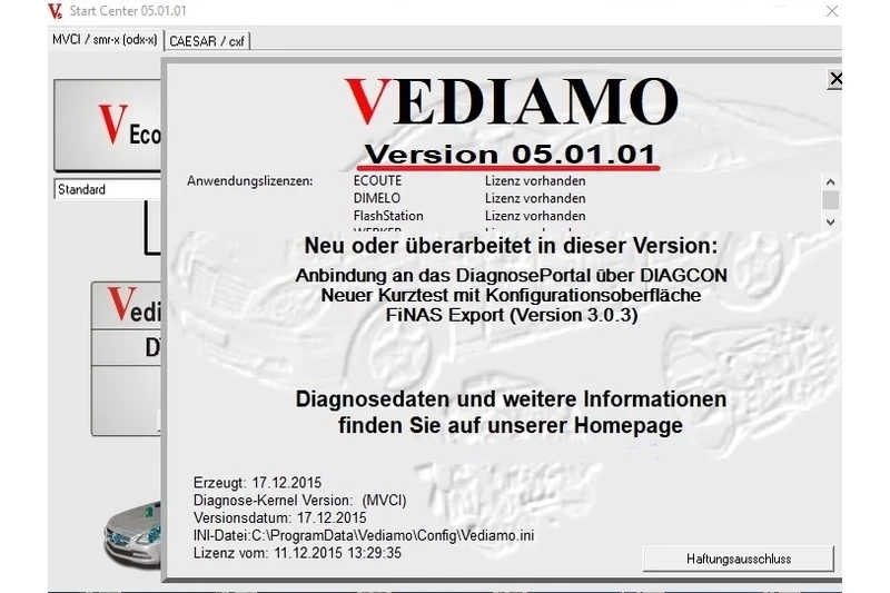 Версии программного обеспеченияVediamo 5.01.01/V4.02.02