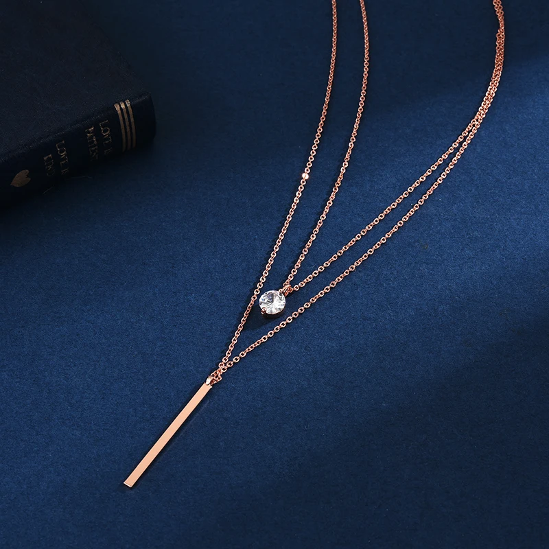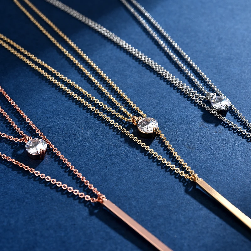 925 Серебряное ожерелье элегантные дизайн двойной кулон блестящее ожерелье из циркона для девочек ко Дню Святого Валентина, подарок, изящное ювелирное изделие, NK093