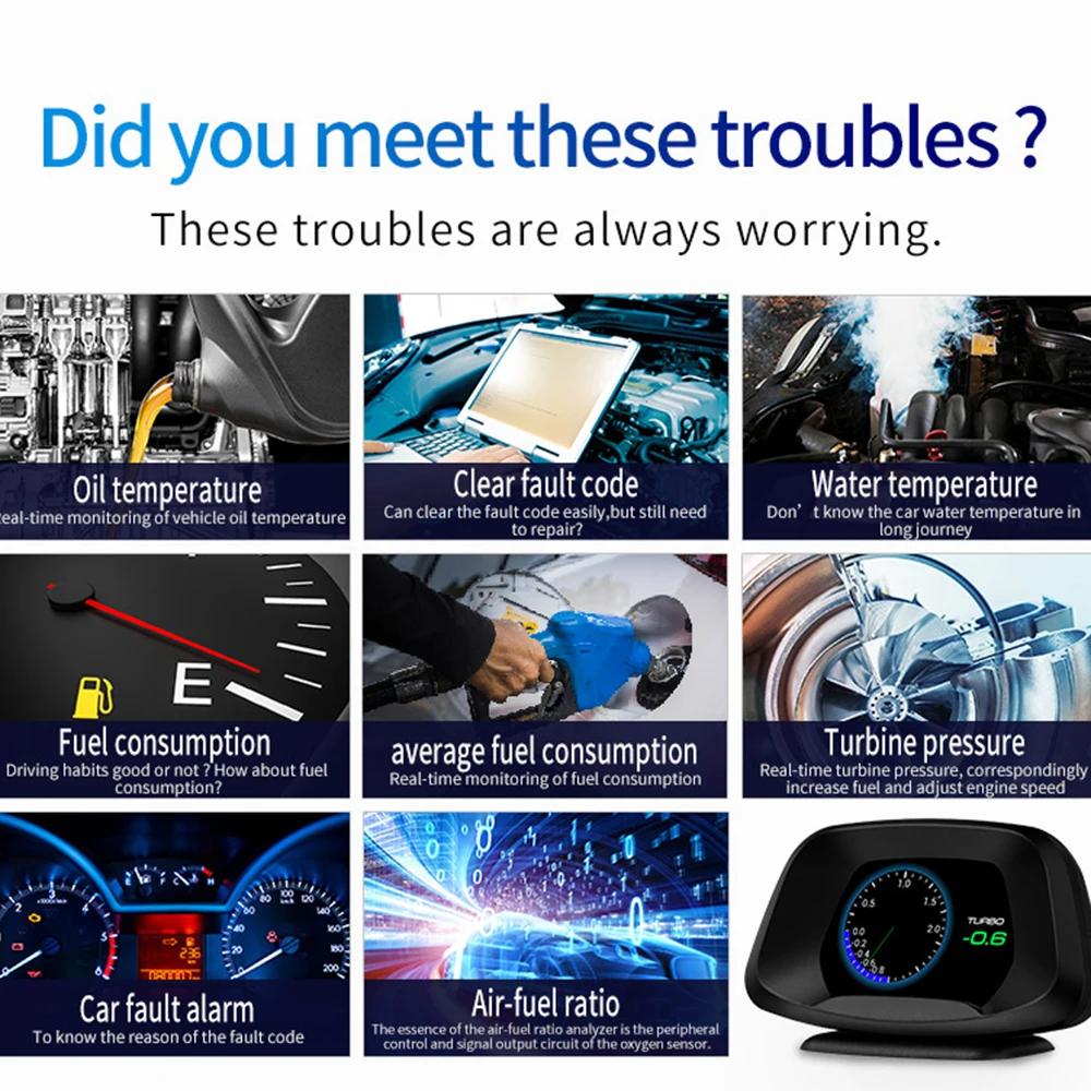 Режим OBD Информация о дисплее: скорость транспортного средства, температура воды, напряжение, расход топлива, об/мин, один пробег, общий совокупный пробег, время в пути, системное время, давление на впуске, температура масла, соотношение воздуха и топлива, давление Турбины, давление впуска, испытание на ускорение, испытание тормозов, считывание потока данных. Сигнал тревоги: сигнал тревоги о превышении скорости, сигнал тревоги о скорости, сигнал тревоги о высокой температуре воды, сигнал тревоги низкого напряжения, сигнализация о неисправности двигателя, четкий код неисправности, свободное переключение между километром и милями, км/ч и MPH переключение свободно, свободно переключается при °C и температурах. Режим GPS Информация о дисплее: скорость, время в пути, Спутниковое время, высота, количество спутников, направление движения, один пробег, напряжение, испытание на ускорение, испытание тормозов. Сигнализация: сигнализация с превышением скорости, сигнализация с низким напряжением, свободное переключение между километром и милями.Пожалуйста, обратите внимание: