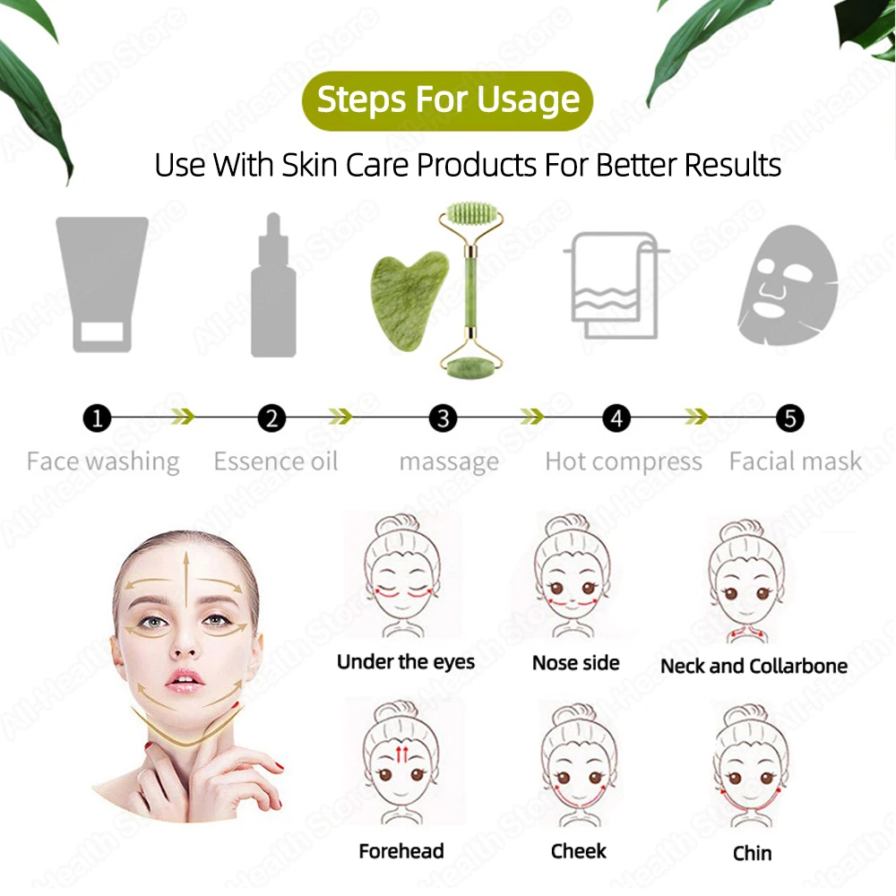 1. Снимает напряжение лица2. Повышает эластичность кожи, подтягивает и тонизирует кожу3. Предотвращает появление тонких линий и морщин4. Уменьшает отечность, мешки под глазами и темные круги вокруг глаз5. Помогает проникать в косметические средства, такие как кремы для лица и сыворотки, глубже в кожу для лучшего впитывания6. Улучшает кровообращение лица для естественного здорового сияния