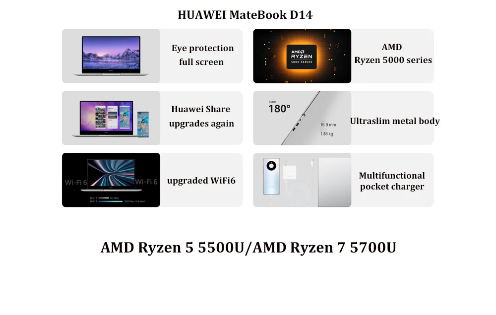 Ноутбук HUAWEI MateBook D14 2021 AMD Ryzen5 5500URyzen7 5700U 16 Гб ОЗУ 512 ГБ SSD WiFi6 Windows10 полноэкранный ноутбук компьютер