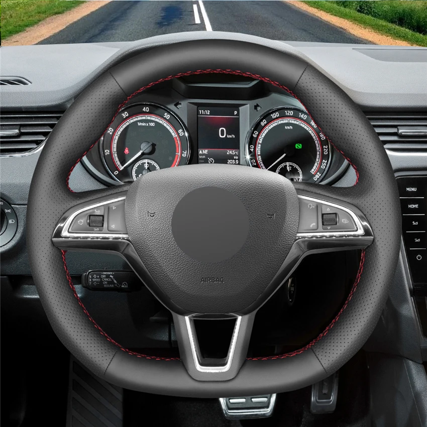 Черная искусственная кожа Чехол рулевого колеса автомобиля для Skoda Octavia RS Citigo Fabia скала Karoq Kodiaq Citijet превосходные 2015-2019