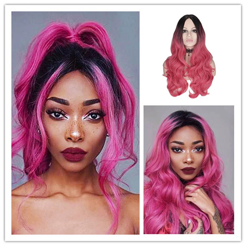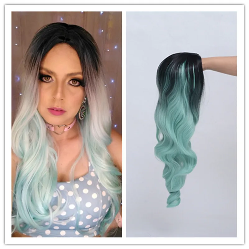 SuQ длинный волнистый парик, синтетические натуральные волосы для женщин, для косплея, длинный Омбре, черный, зеленый, термостойкий женский