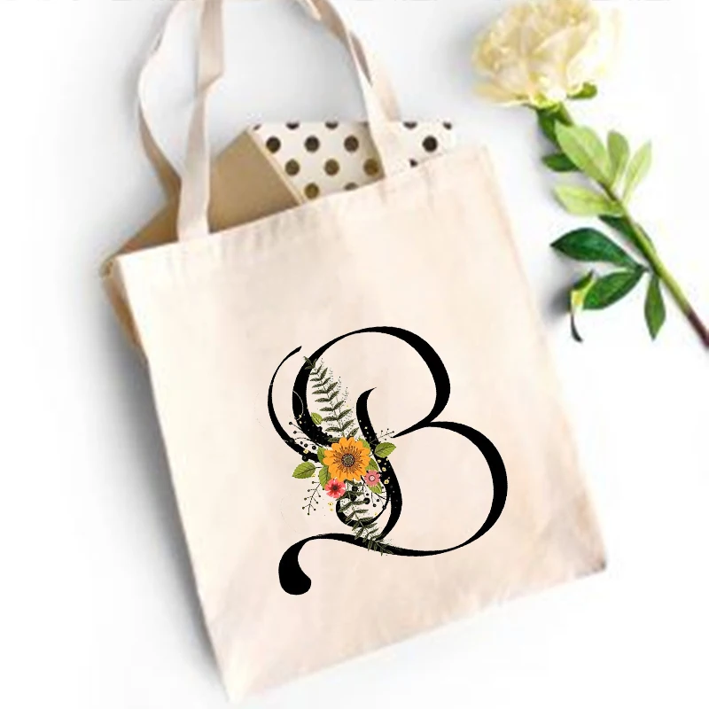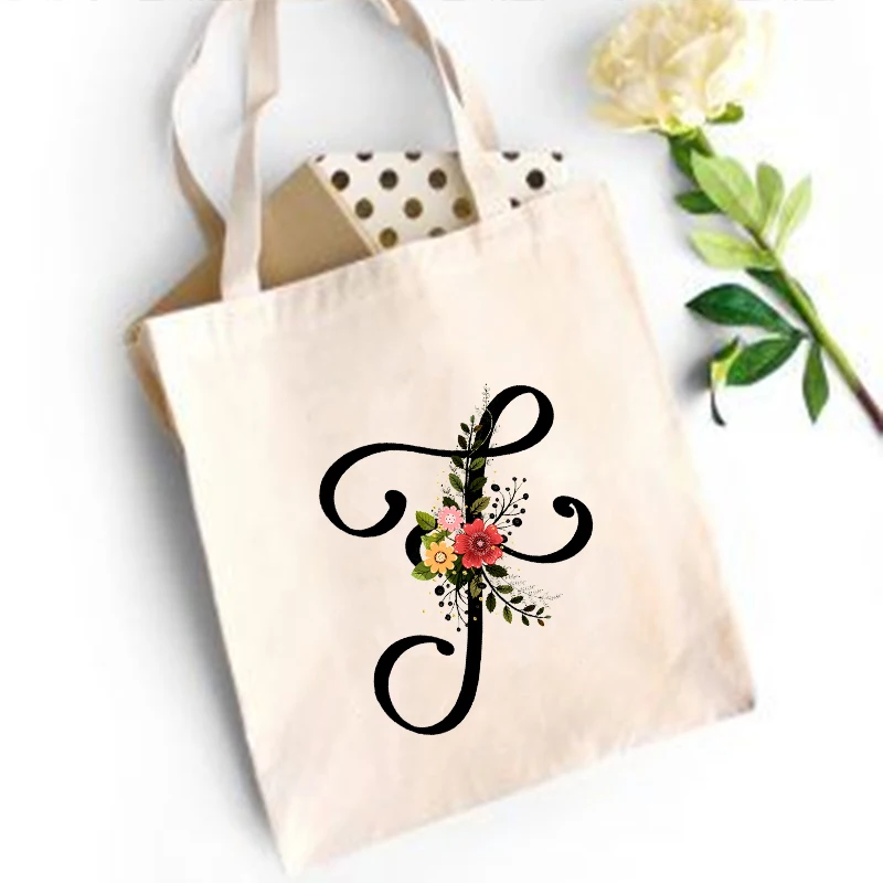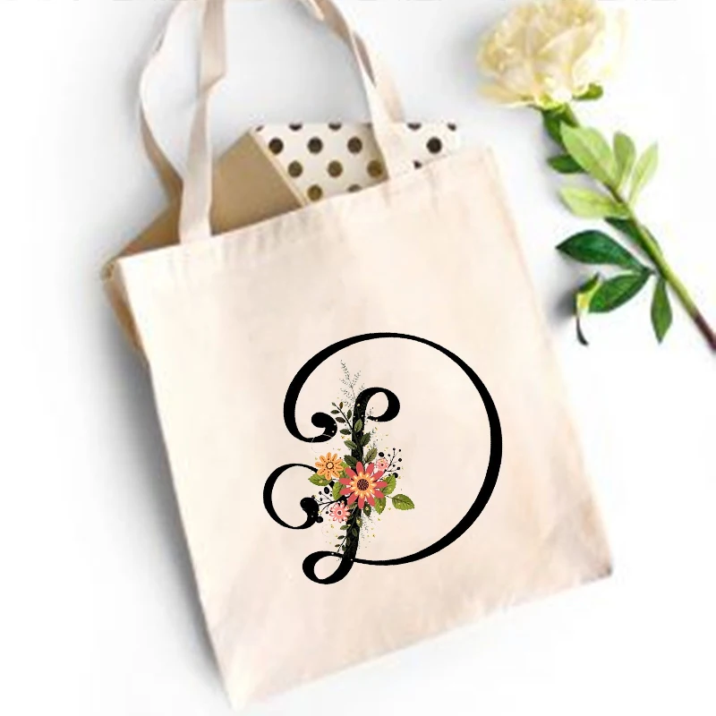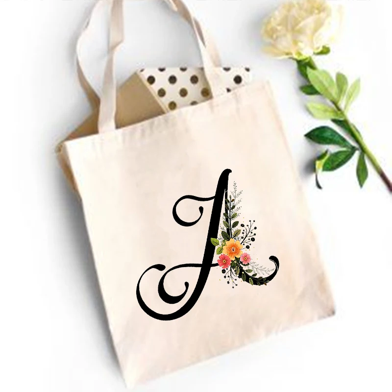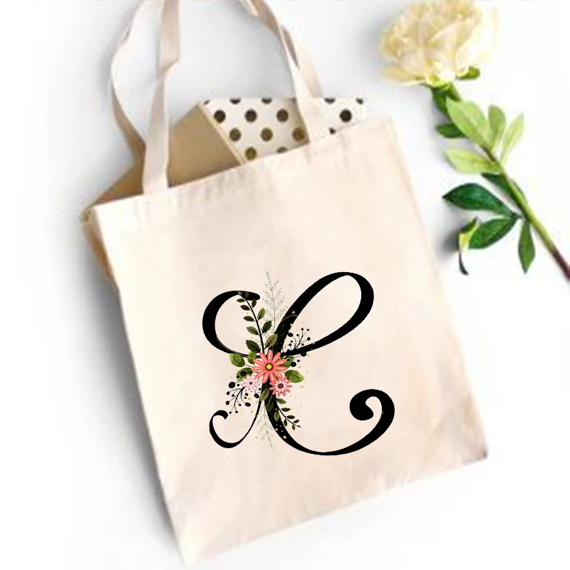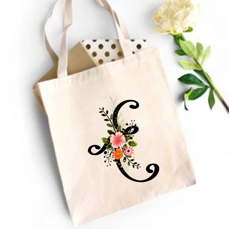 Холщовые Наплечные сумки с рисунком алфавита, цветов, милые женские...