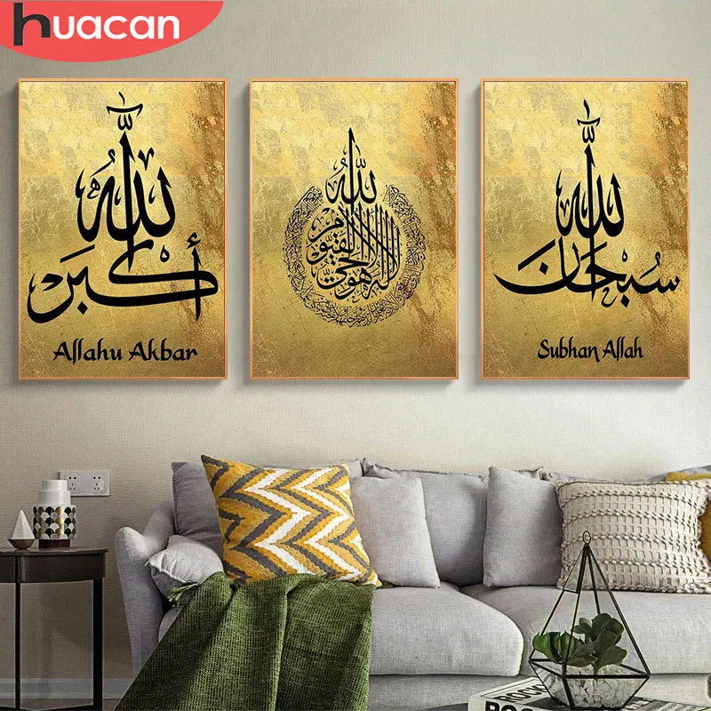 HUACAN Алмазная картина полностью круглая квадратная религиозная Алмазная вышивка продажа мусульманский текст Стразы мозаика настенная живопись