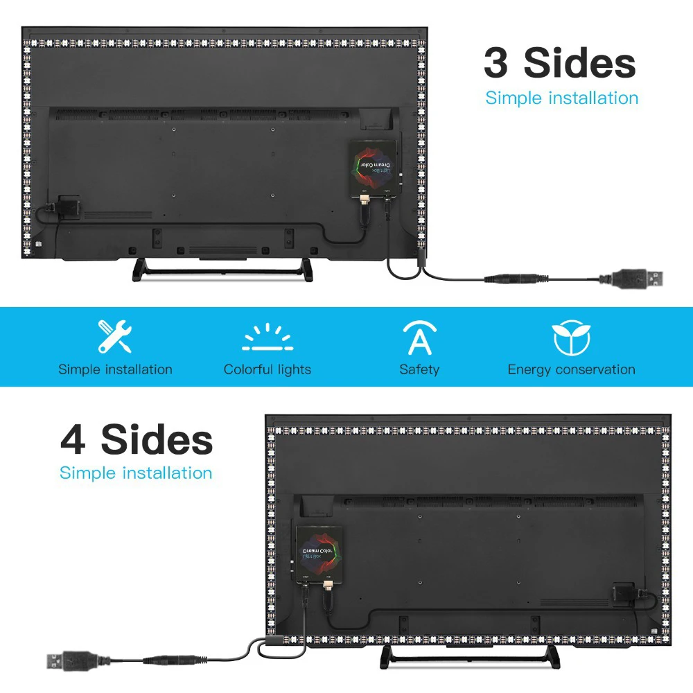 Как установить:Примечание:Светодиодная лента работает должным образом только после установки на ТВ или ПК. Если только несколько светодиодный светильник. Это не проблема качества! Пожалуйста, проверьте установку и настройки. Пожалуйста, следуйте инструкции, чтобы настроить комплект полос.