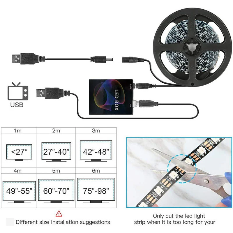 Светодиодная лента, яркий свет, для компьютера, настольного ПК, подсветка экрана, USB питание WS2812, гибкая неоновая Декорация