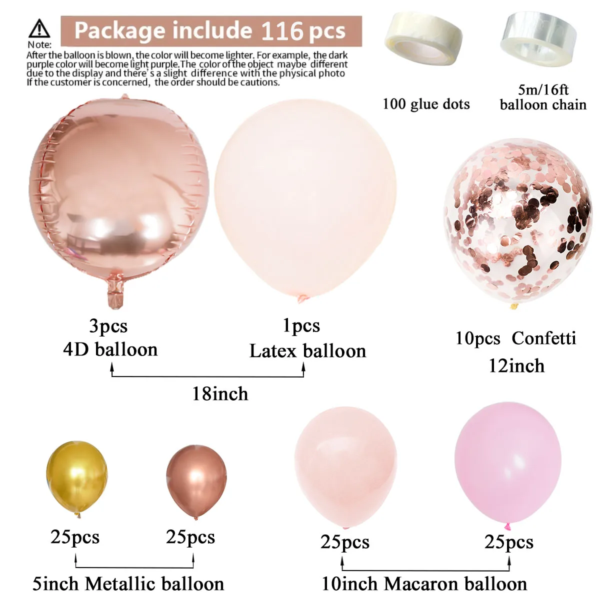 116 шт. персик воздушные шары гирлянда арочный комплект Chrome цвета розового золота 4D клипсы для воздушных шаров, детского дня рождения, платье на свадьбу, День рождения украшения 16 18 лист длины 25,35,