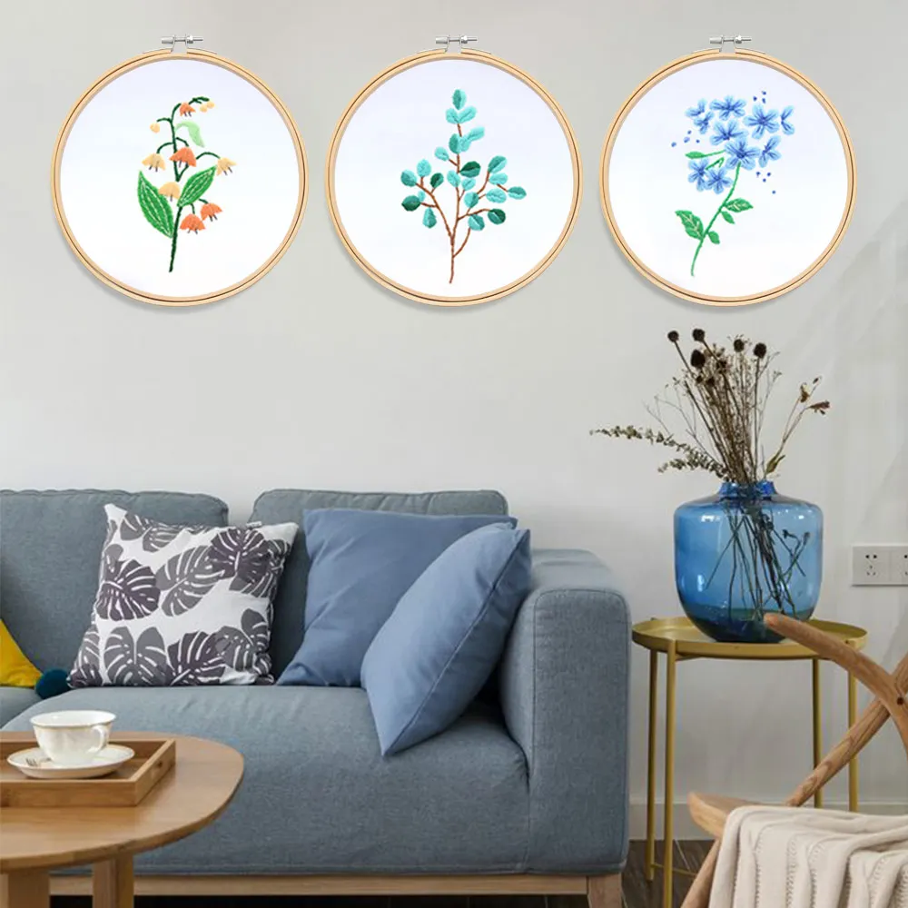 Набор для вышивания с изображением цветов, растений, круглая ткань, инструменты для шитья, орнамент Швейное Ремесло сделай сам