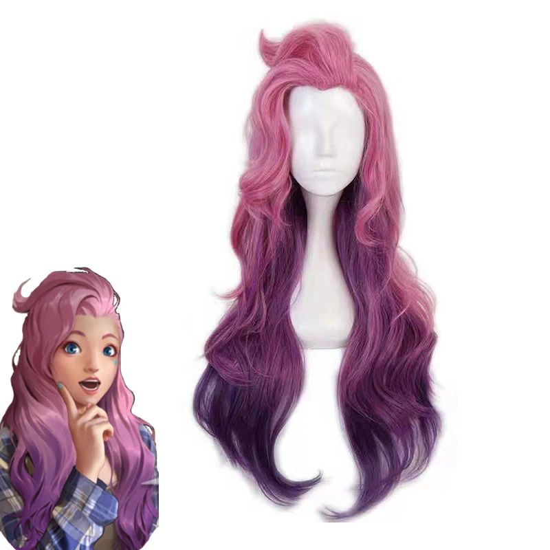 Парик для косплея серафинской волны, термостойкий синтетический для женщин, костюм для косплея, Розовые Смешанные фиолетовые длинные парики