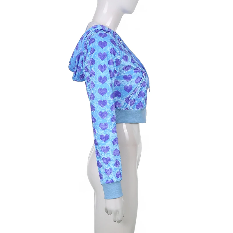 Демисезонные женские толстовки Y2K с принтом сердца, укороченный то...