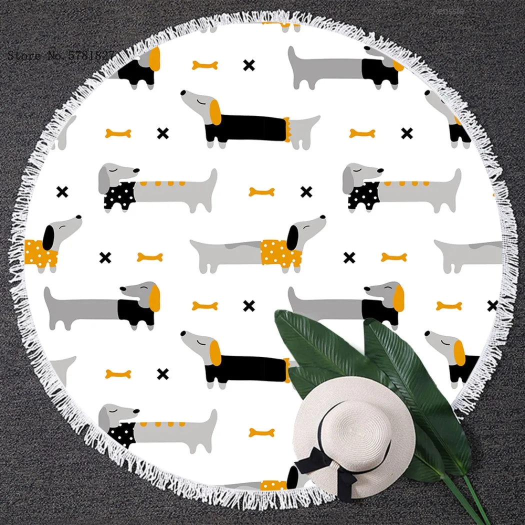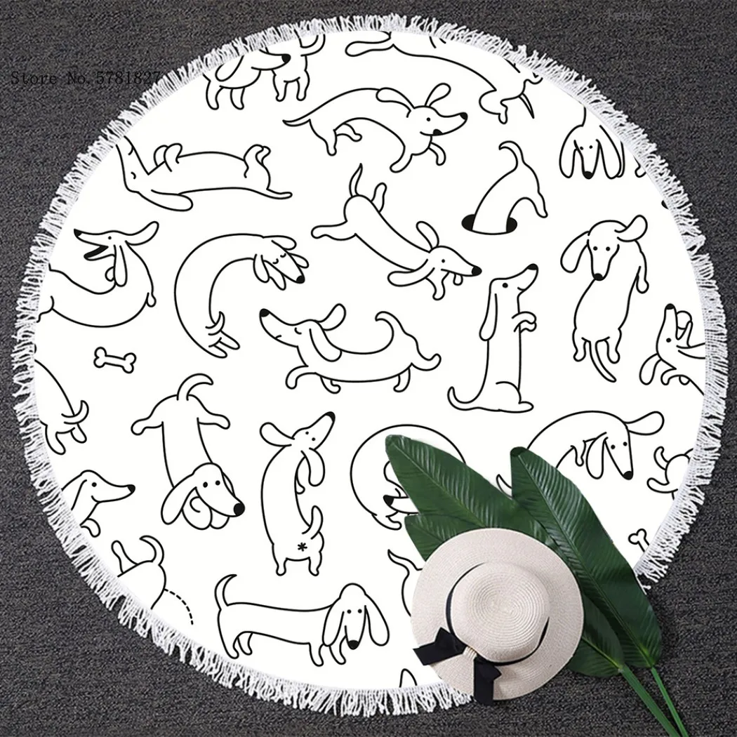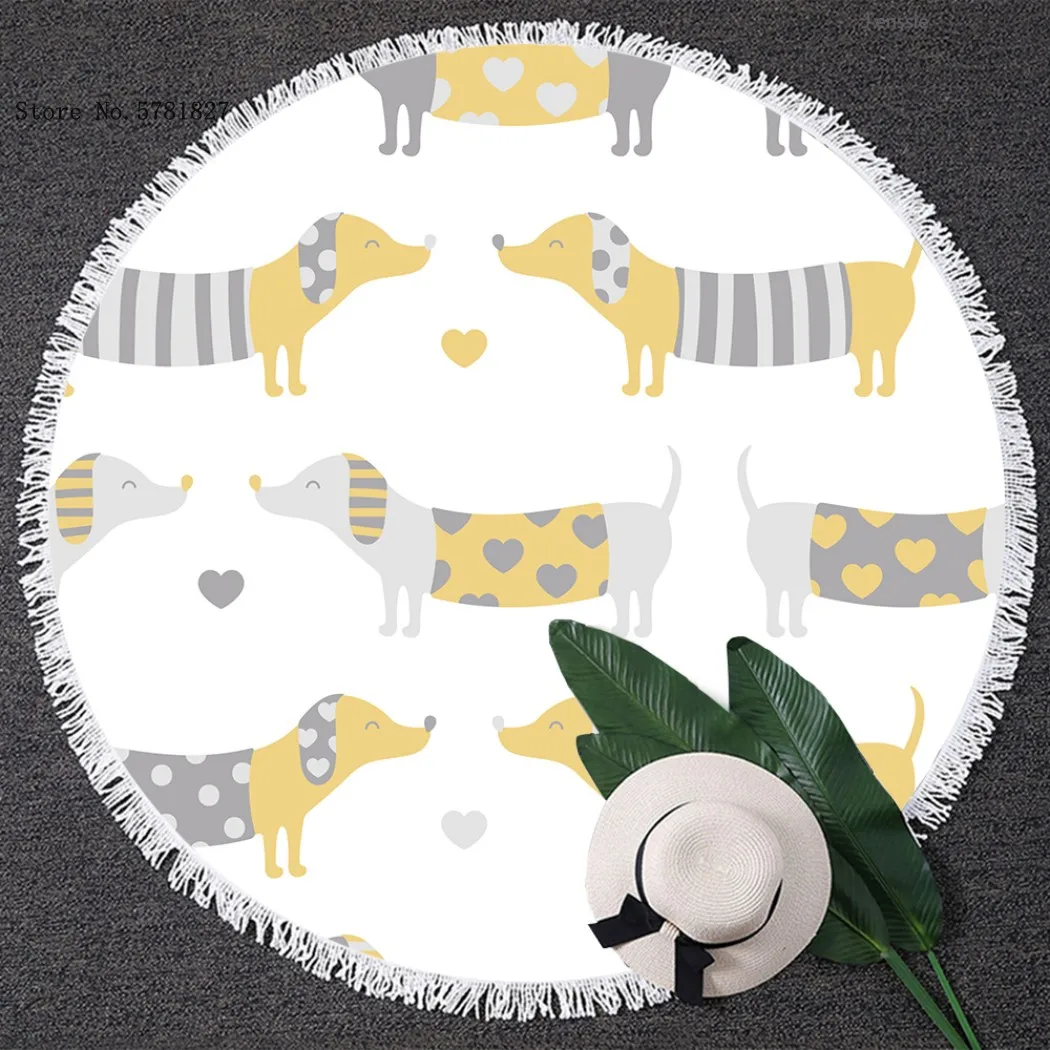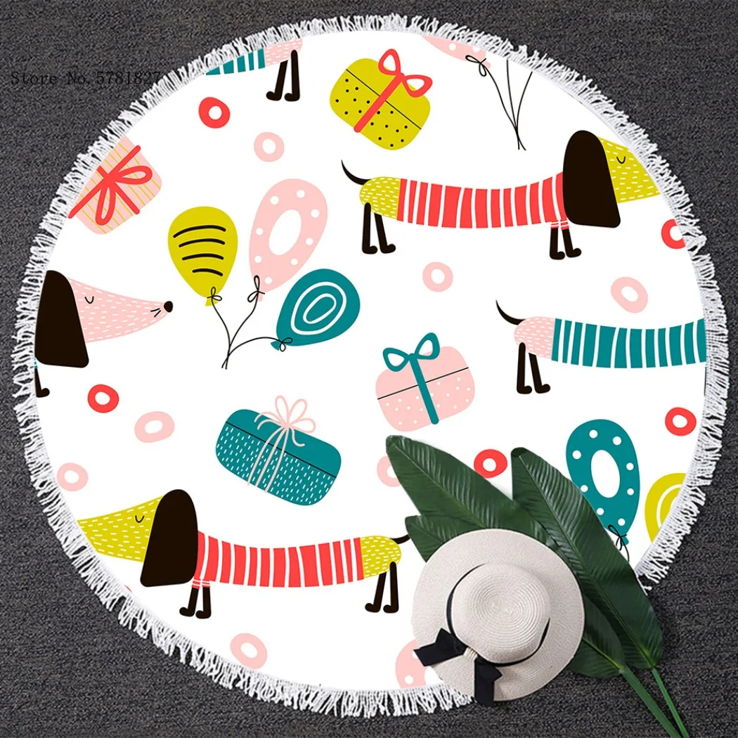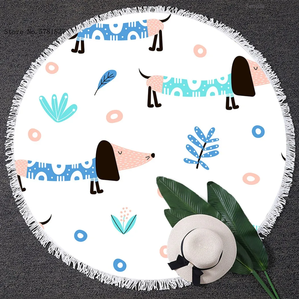 Круглое пляжное полотенце в виде таксы с круглыми кисточками для сосисок, летнее женское матовое пляжное полотенце для йоги, мультяшное круглое пляжное полотенце