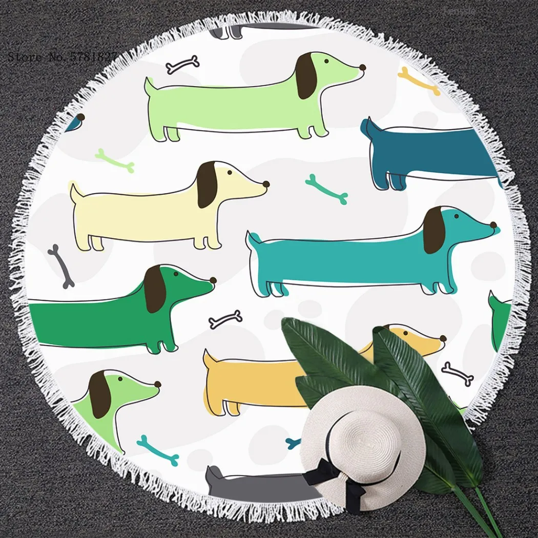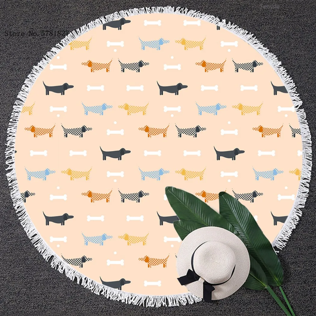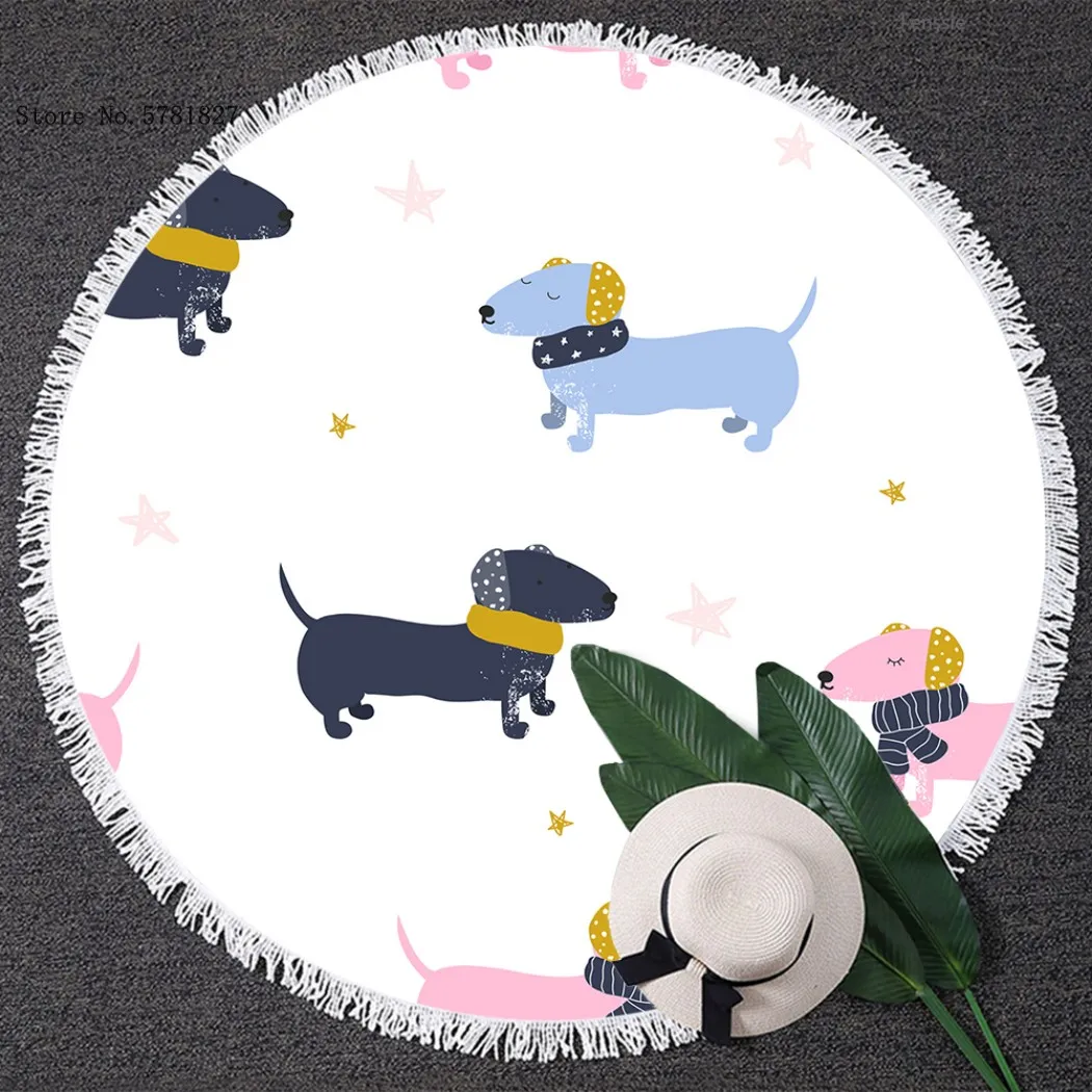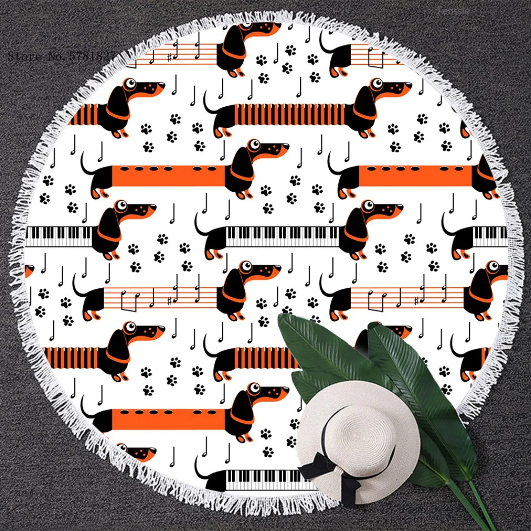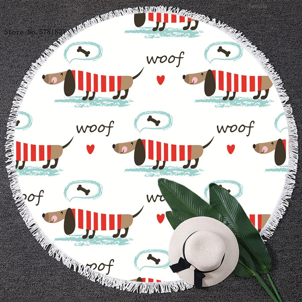 Круглое пляжное полотенце в виде таксы с круглыми кисточками для сосисок, летнее женское матовое пляжное полотенце для йоги, мультяшное круглое пляжное полотенце
