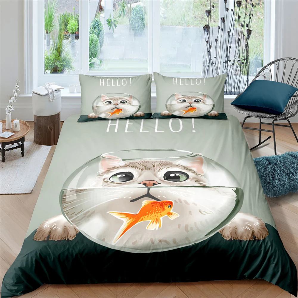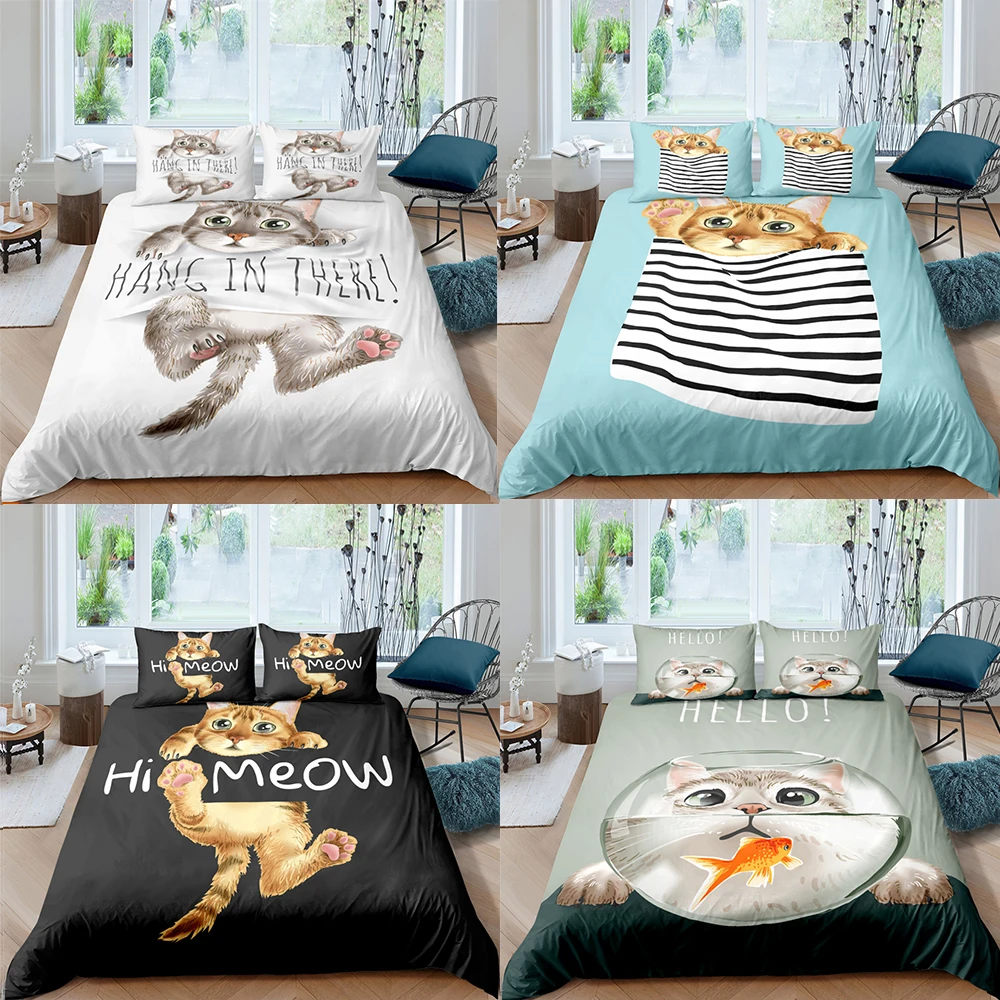 2комплект детской одежды из 3-х предметов с изображением платье с изображением котенка для маленьких детей Hello Kitty с пододеяльником и наволочками с узором из 3D набор постельных принадлежностей, одеялоодеяло крышка набор домашний текстиль комплект постельного белья