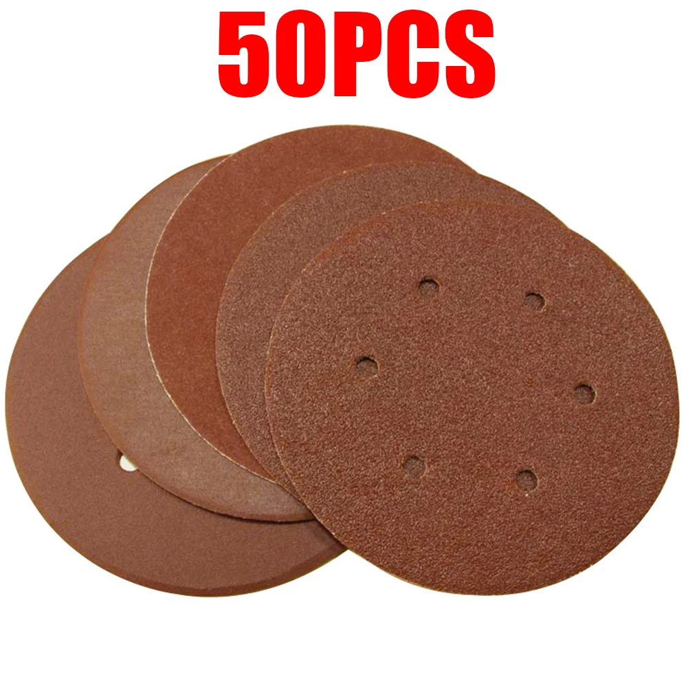 Круглые наждачные диски, 50 шт., 6 дюймов, 150 мм, 6 отверстий, абразивные диски с зернистостью 6080120180240, абразивные шлифовальные диски с крючком и петлей для полировки