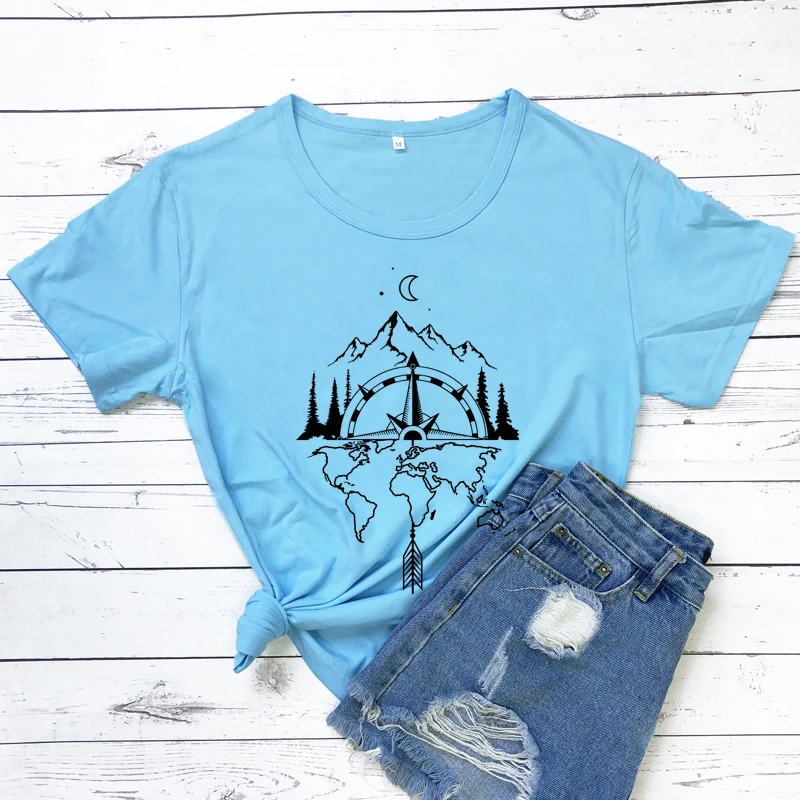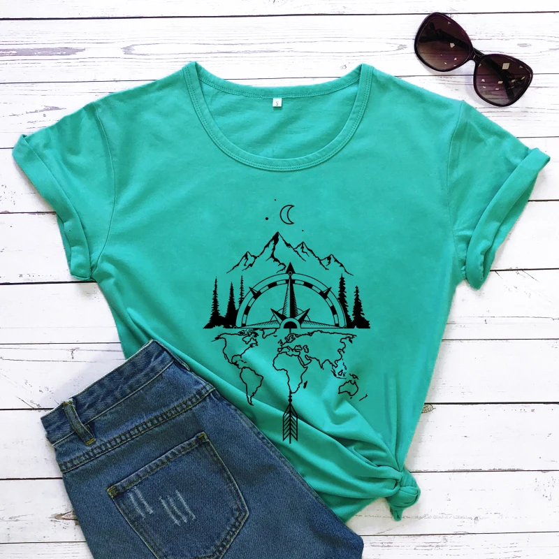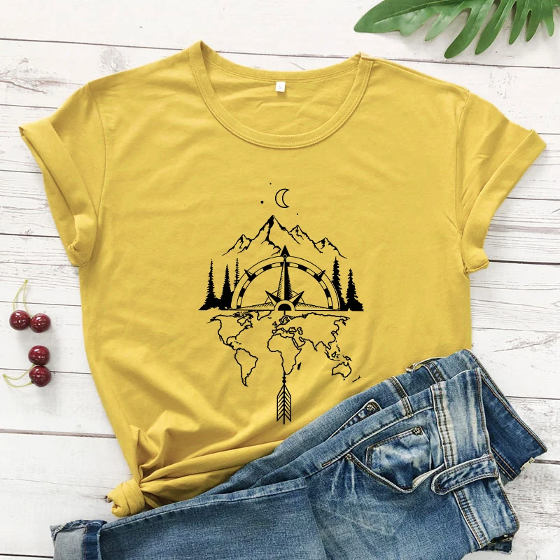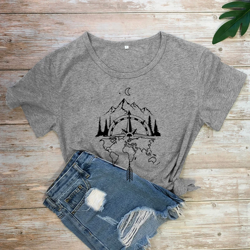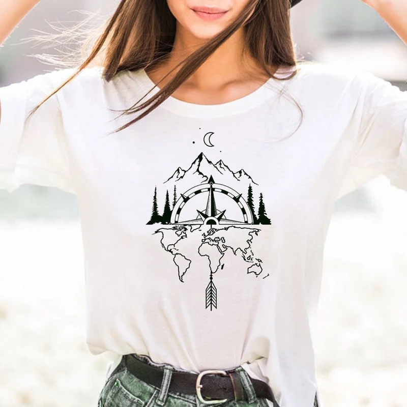 Компас горы футболка Винтаж лес Camper футболка эстетическое Для женщин Графический приключений на открытом воздухе Футболка Топ