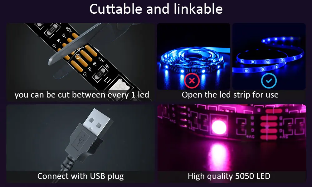 Подсветильник для телевизора 5 м, цветной меняющий цвет 5 В, Светодиодная лента RGB 5050 с питанием от USB для телевизора 24 - 80 дюймов, зеркала, фотосессия, Рождество