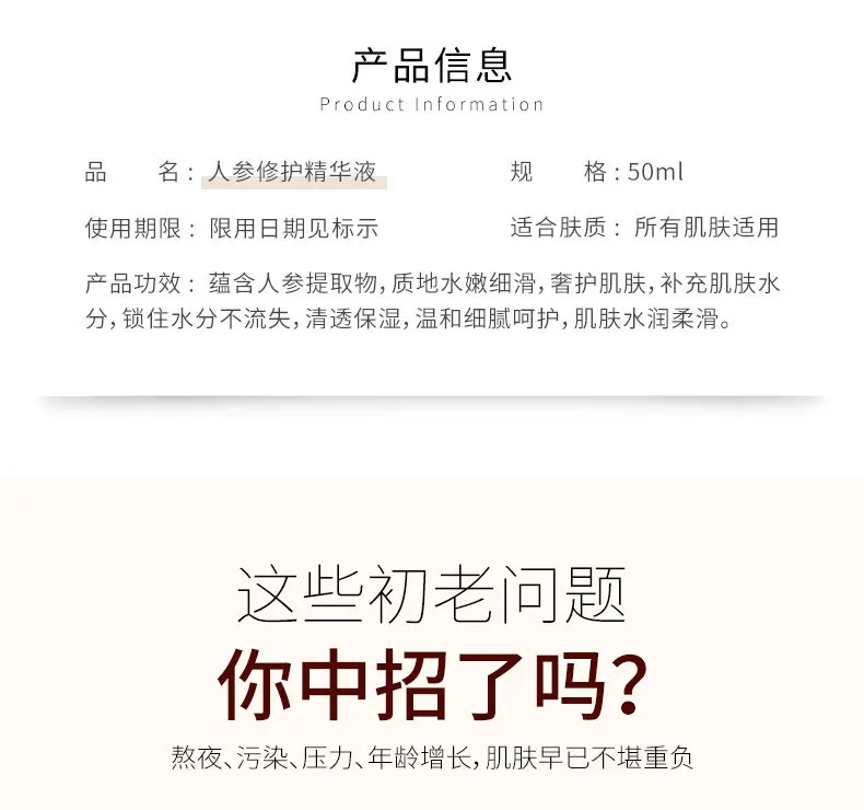 Сыворотка для лица, с женьшенем, восстанавливающая, увлажняющая, Антивозрастная, для снятия сухости и жирности, 50 мл