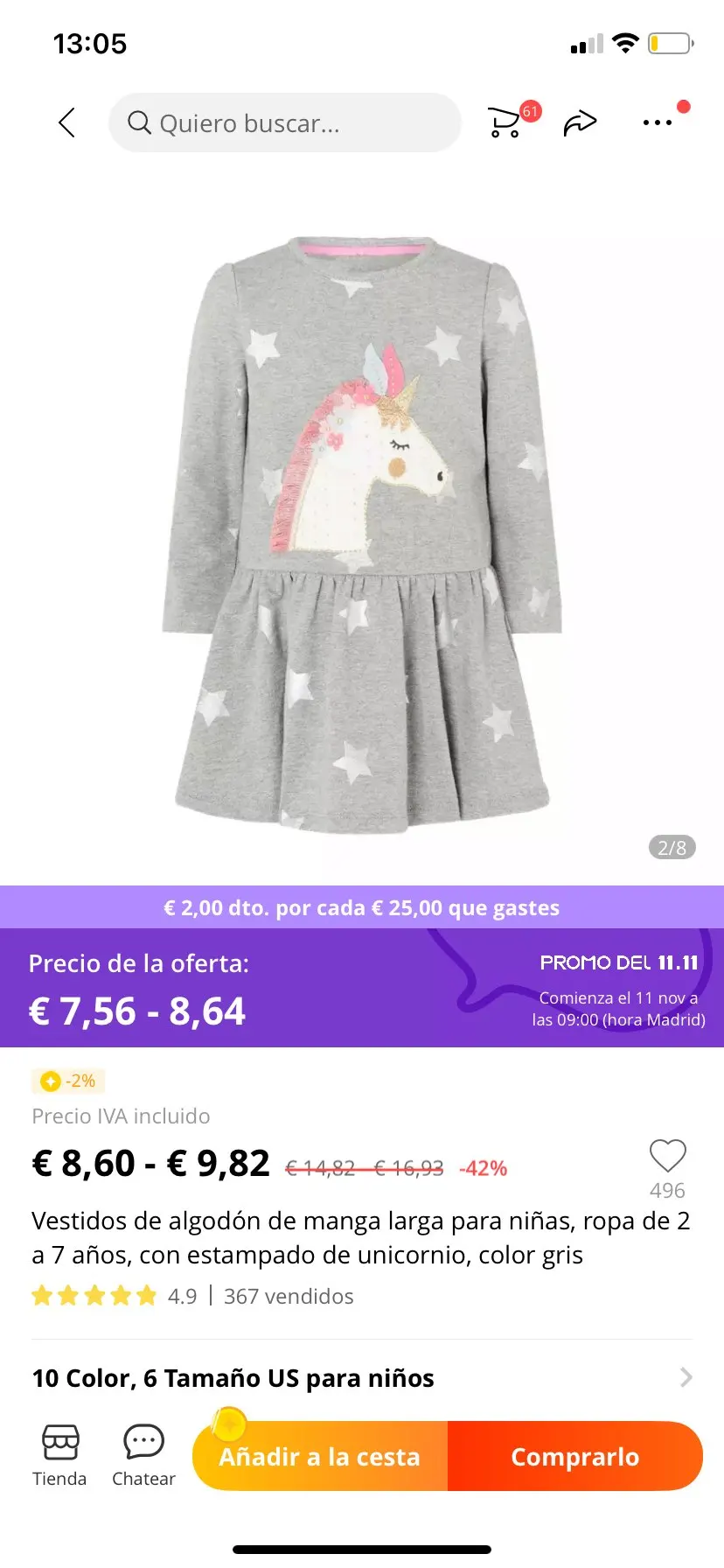 Страна: ES Color: T7371 dots Kid Size: 7T Доставка: Standard Shipping 29.10.2021