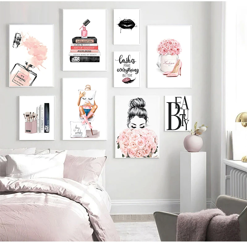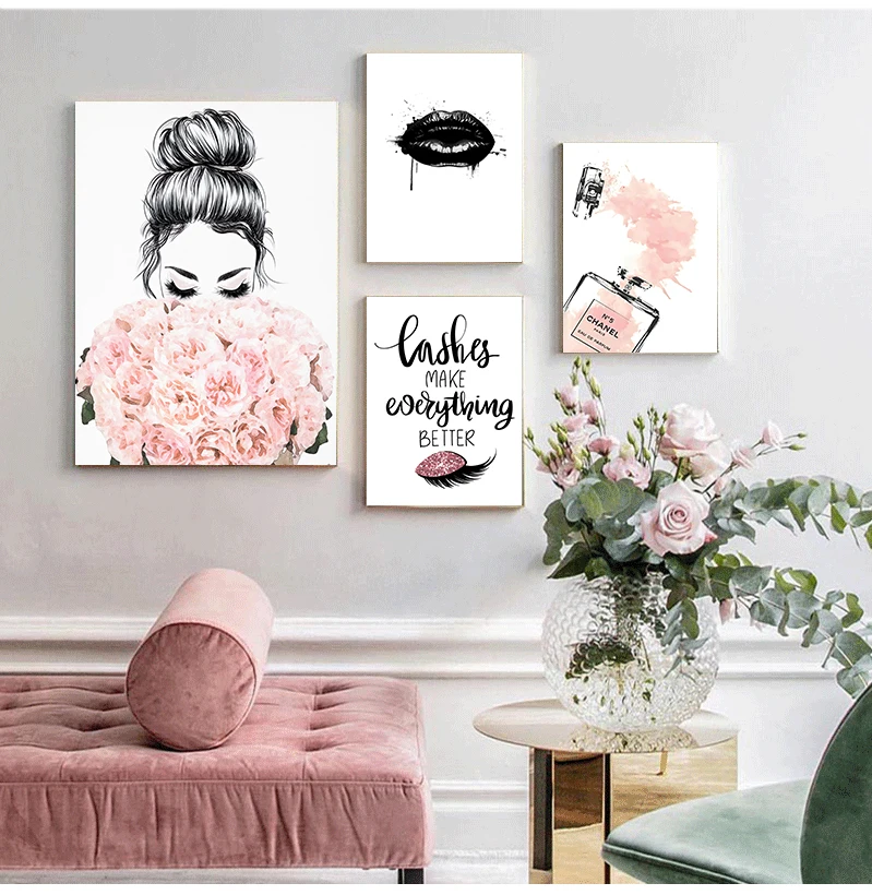 Настенная картина в скандинавском стиле на холсте с изображением черных губ, Женский плакат, печать, простота, парфюм, книги, картина, современный салон, украшение для красоты
