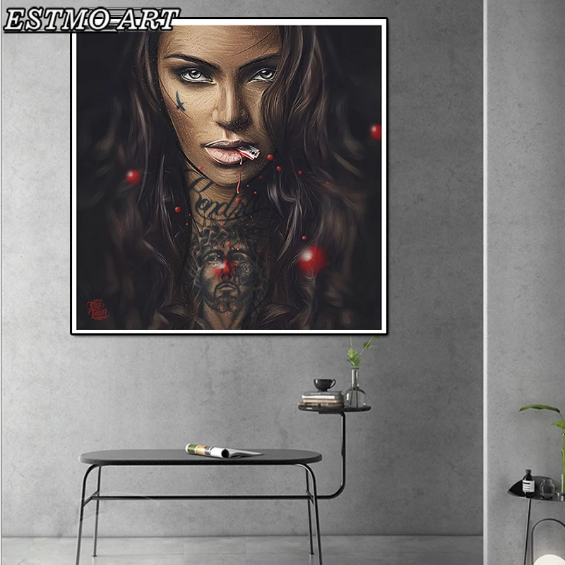 Картина на холсте, классная сексуальная девушка, тату, принты и плакаты, граффити, улица, поп, настенные картины, современный портрет, Постер для гостиной