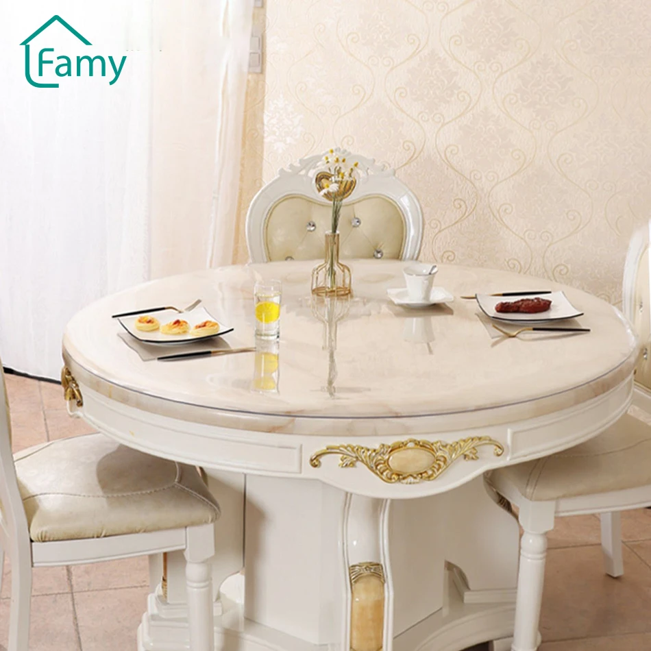 Круглая скатерть, прозрачная Водонепроницаемая скатерть из мягкого стекла и ПВХ, маслостойкая, для обеденных столов, кухни, домашнего стола