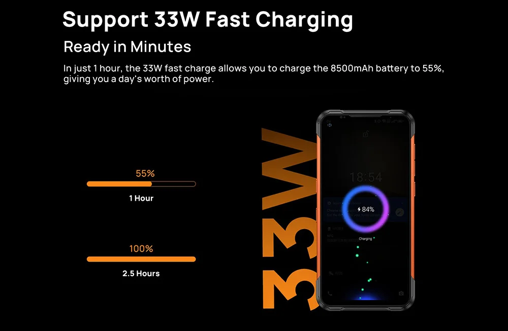 Смартфон DOOGEE S97 Pro, 8500 мАч, 33 Вт, 40 м, 8 ядер, 8 + 128 ГБ